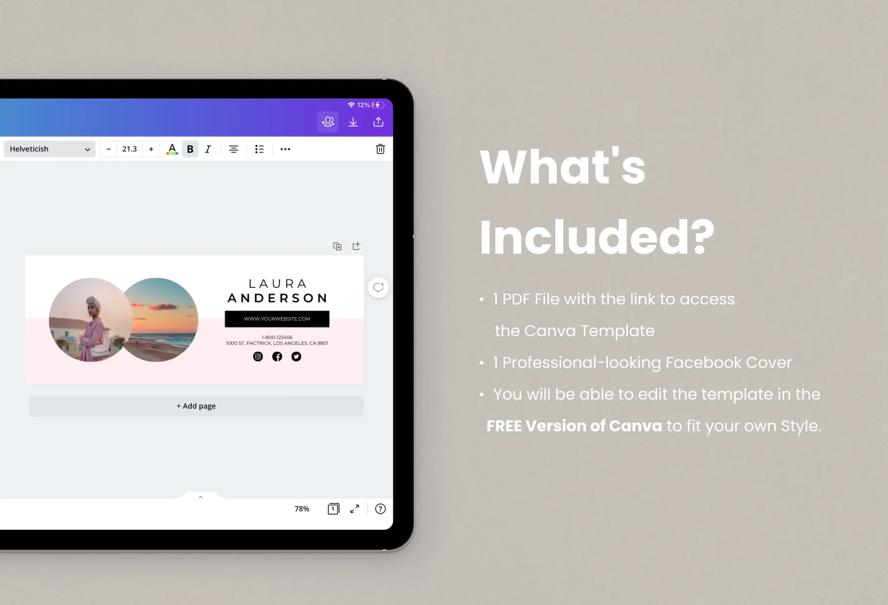 Keep your Facebook page looking fresh and trendy with this new Canva Facebook cover template! Create a beautiful and professional-looking Facebook Cover for your business in just minutes. Go from basic to awesome by using this easy-to-use design that you can customize in no time, without any graphic skills. Instantly boost your social media presence with this beautiful Facebook Cover for Canva.