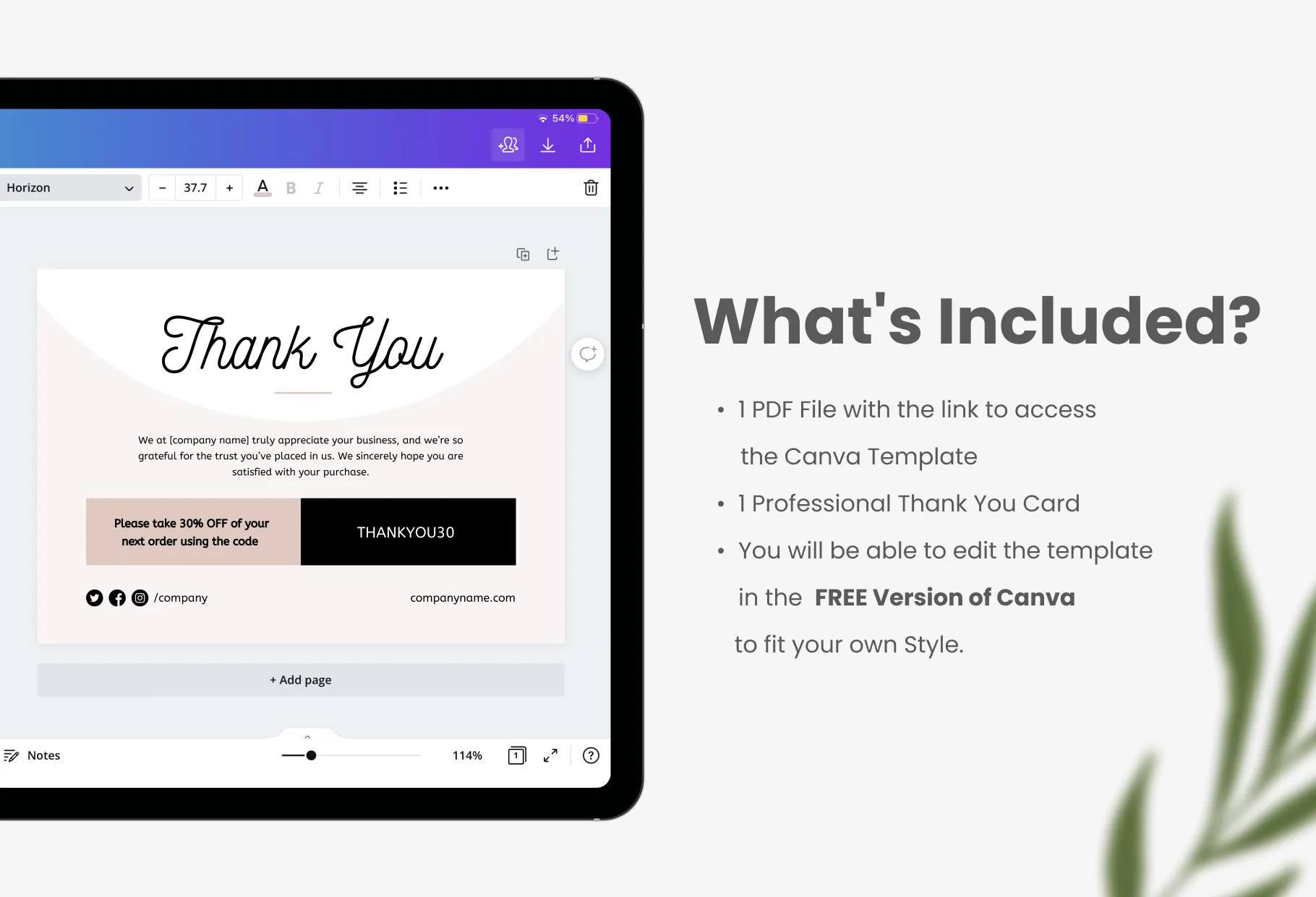 Thank You Cards are the best way to keep your customers coming back for more! Most sellers are too busy running their businesses to take time out for sending thank-you cards after every sale. A small gesture like sending a thank you card can make all the difference in how your customer feels about their purchase, and if they'll return again! This is especially important when selling online or on marketplaces where it's harder to build trust and rapport with buyers. Inserting a Thank you Card is a great way to show that you care about them and their experience with your business. But, designing the perfect card can be hard! This printable template will save you hours of time – just download the template file, import it to your free Canva account, fill in the blanks, add your logo, customize colors, fonts, or text styles without hiring someone else to do it for you! - It's super easy even if you don't have graphic design skills! Encourage repeat sales with this professional-looking thank you card for CANVA. This listing is for the digital files only*** No physical product will be sent.