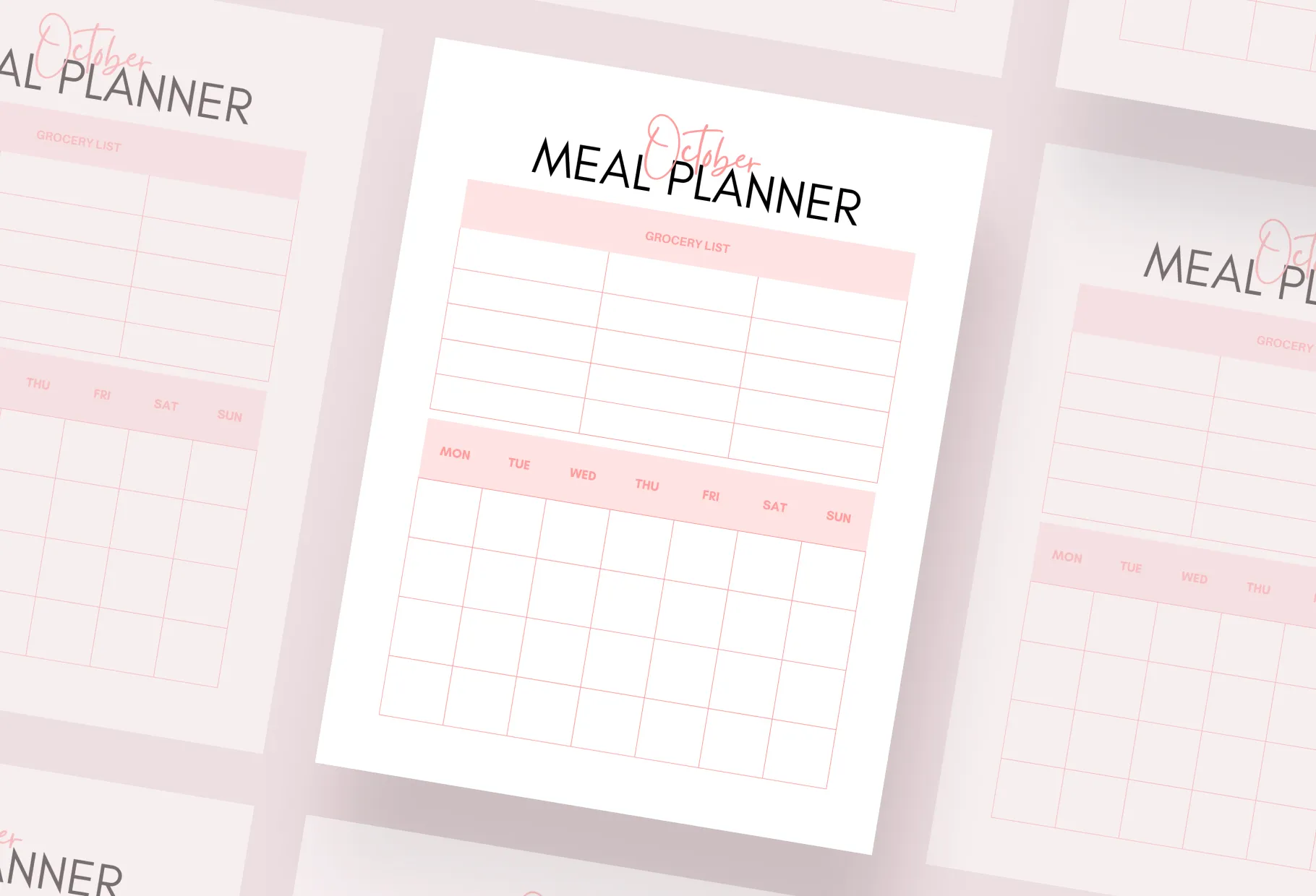 Light Salmon Monthly Meal Plan Calendar Printable and Editable Canva Template