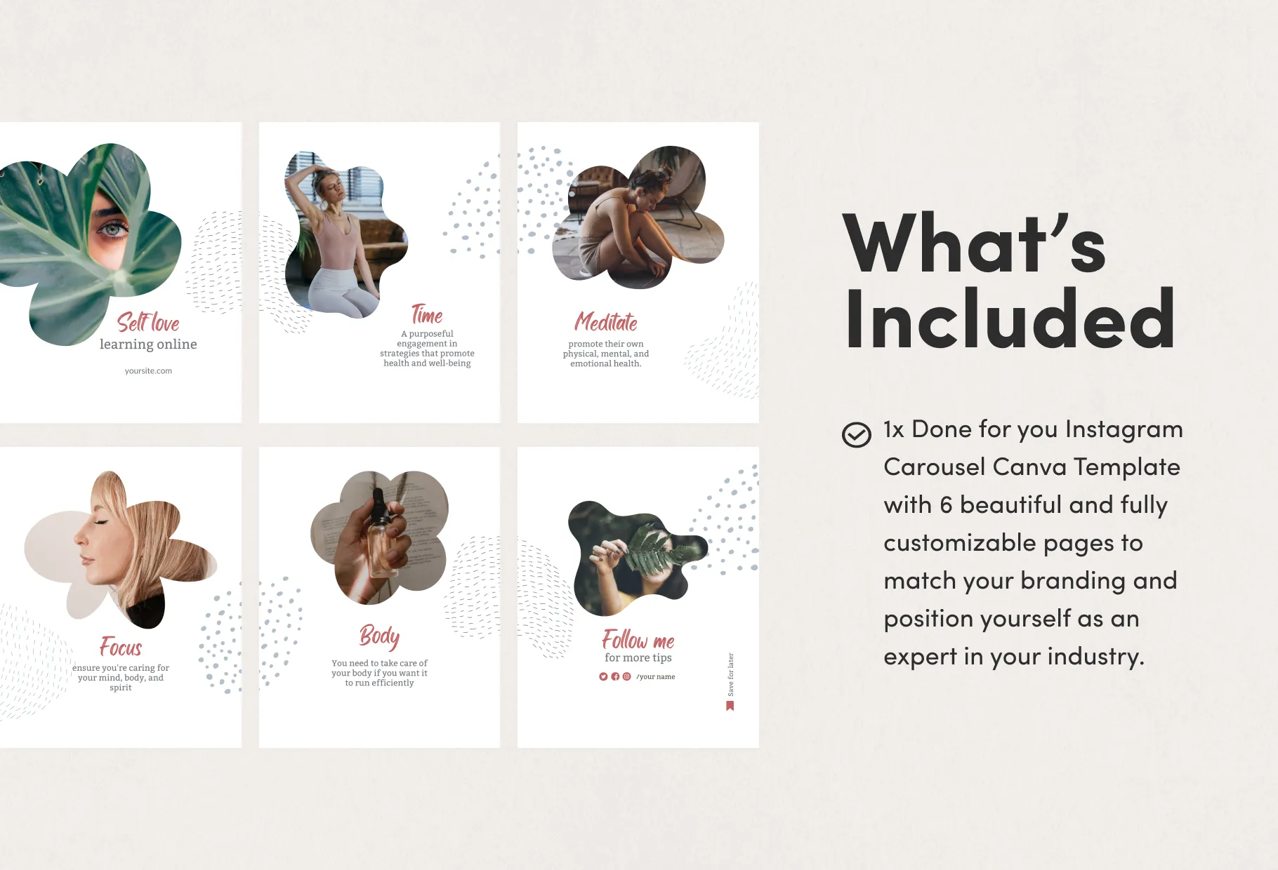 Download this set of pre-designed social media canva templates with real text to help you grow your audience with engagement boosting and share-worthy marketing designs, show up as an authority in your industry, turn followers into paying customers, and give your feed an instant boost while save you time and effort so you don't have to invest time writing or designing content from scratch.