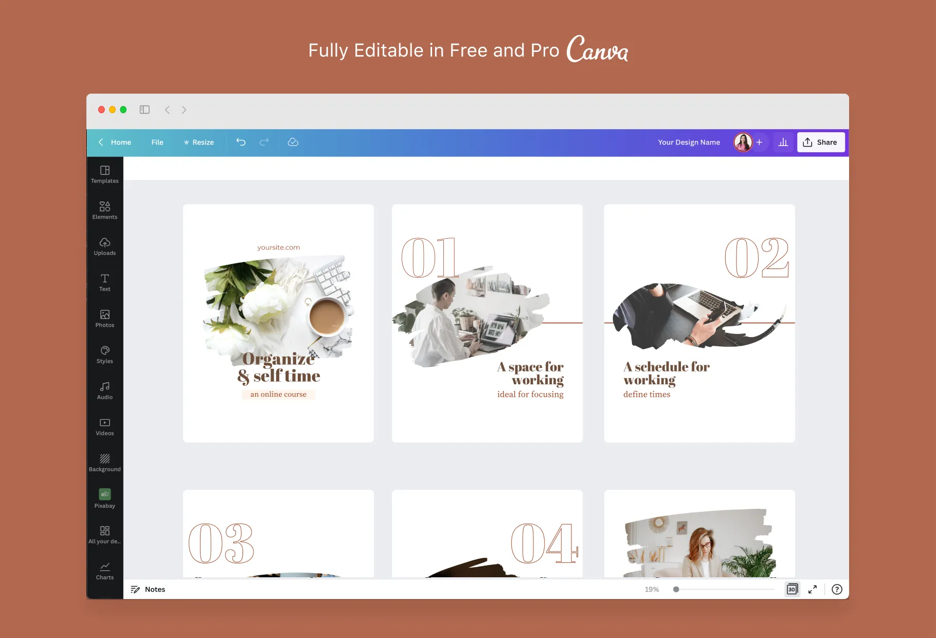 After purchasing the templates, all you need to do is create a Canva account either on your mobile device or computer. There, you will be able to access all of the Canva templates you purchased and edit them accordingly.