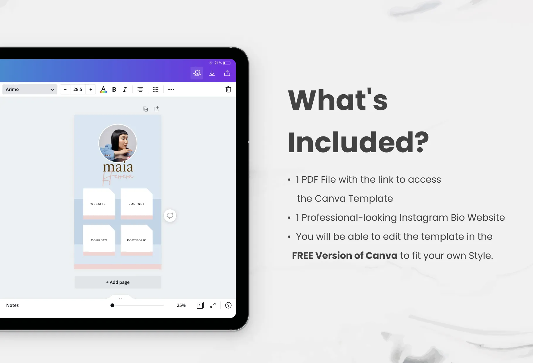 Here's how it works: https://bit.ly/3q4Xex4 - Create a mobile-ready one-of-a-kind personalized landing page for your Instagram bio with this beautiful Canva template! No website or programming skills needed! This Instagram Link in Bio Canva Landing Page Website will help you create a simple and elegant-looking website for you to showcase your offers, lead magnets, social networks, email list, products, services, and more, thus enabling you to lead the visitor down your conversion funnel. Within just minutes you'll be able to create an amazing landing page that will drive traffic to your blog or next campaign idea. it’ll be as simple as 1-2-3! Perfect for coaches, content creators, service providers, bloggers, and podcasters. - No website or domain required. - No complex tools needed. - No code and No stress.