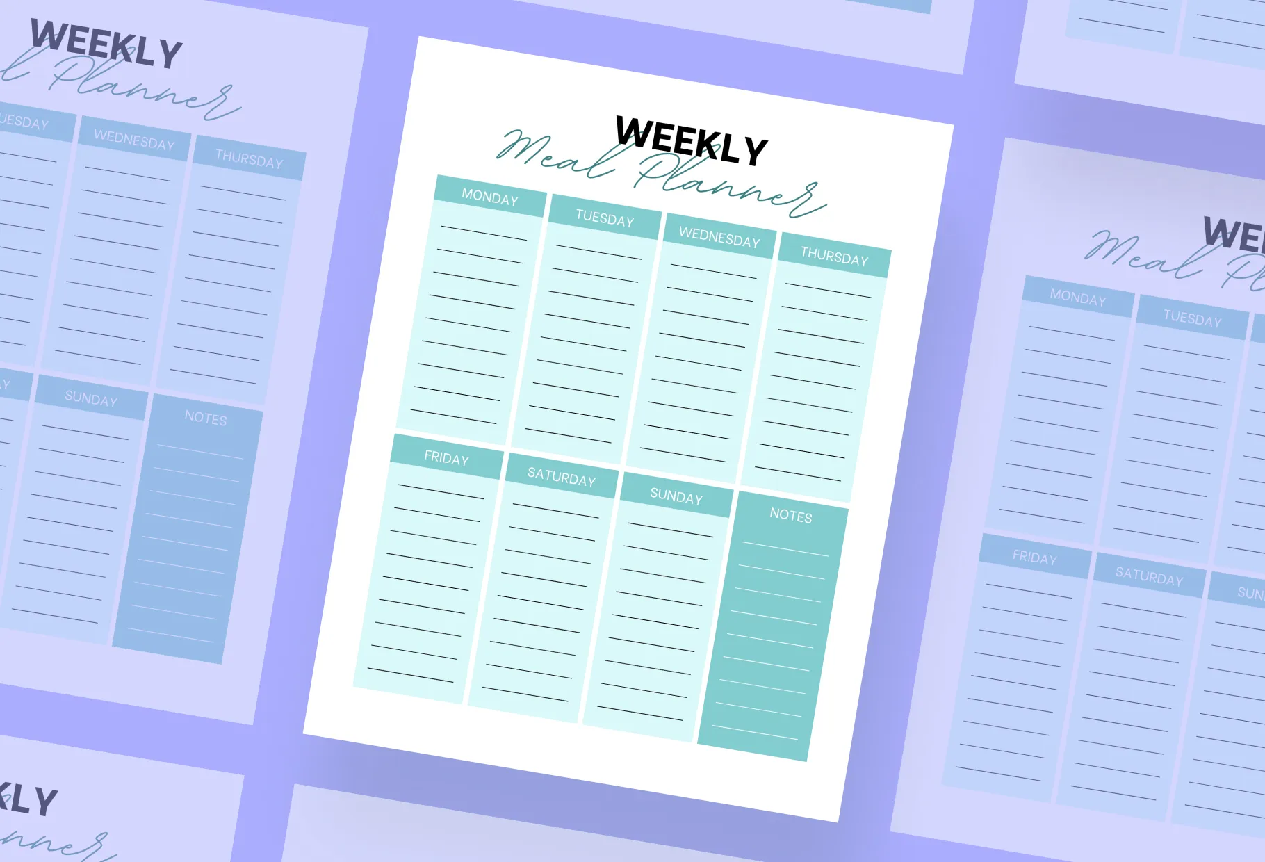 Medium Sky Blue Weekly Meal Planner Printable and Editable Canva Template