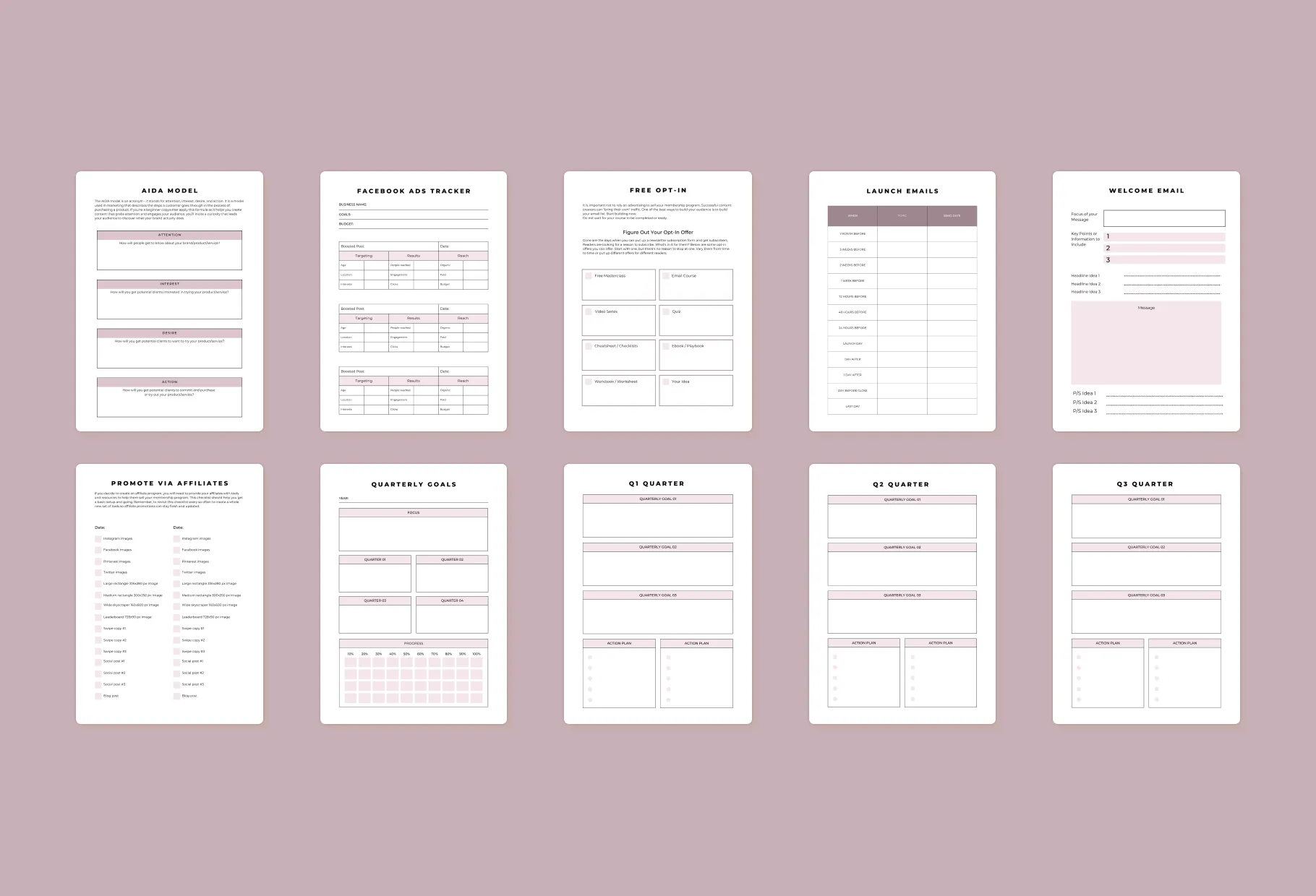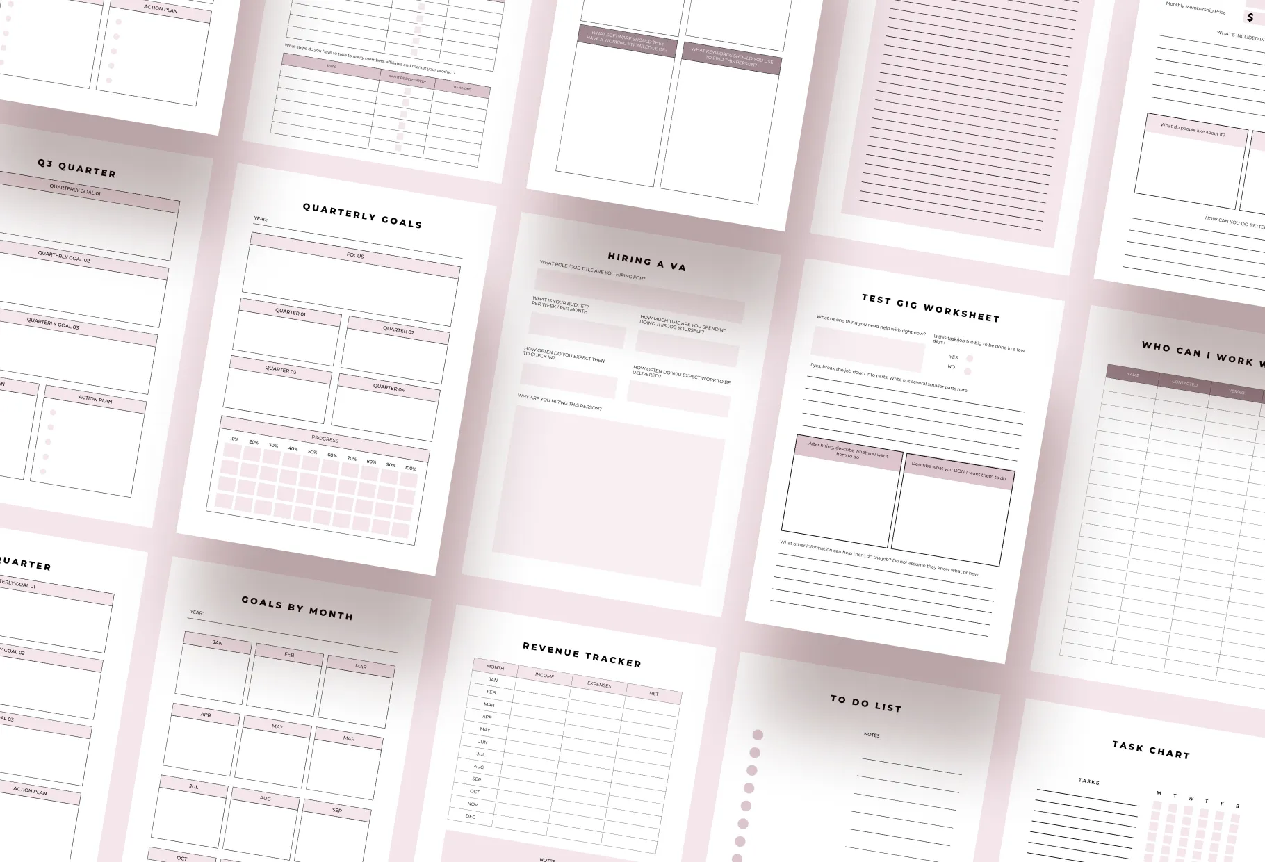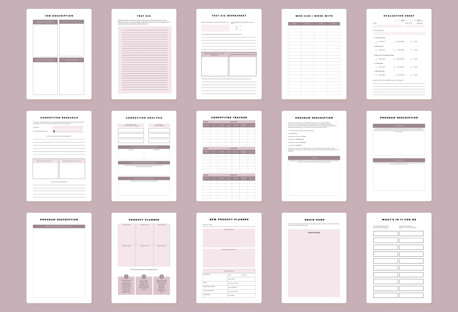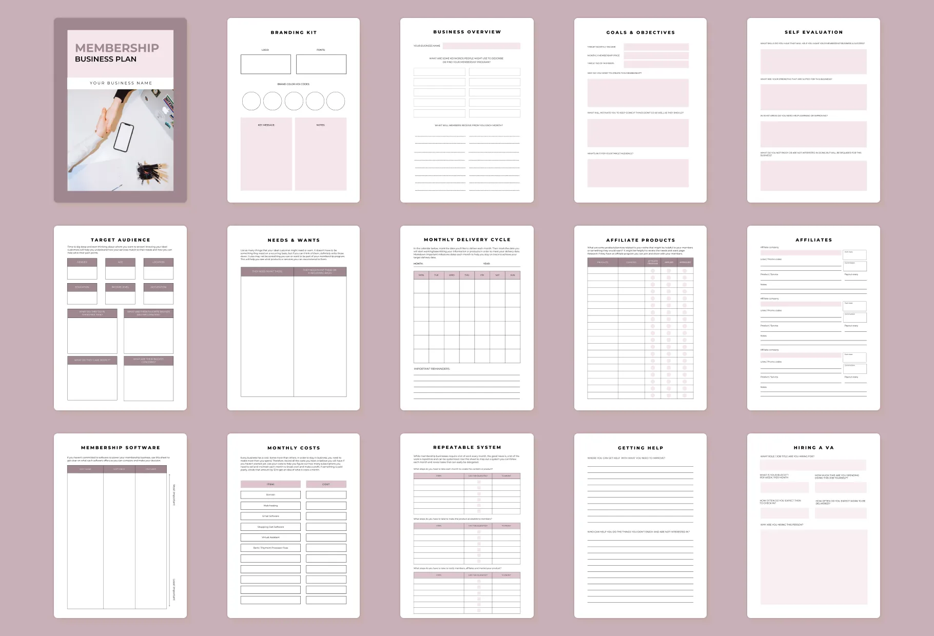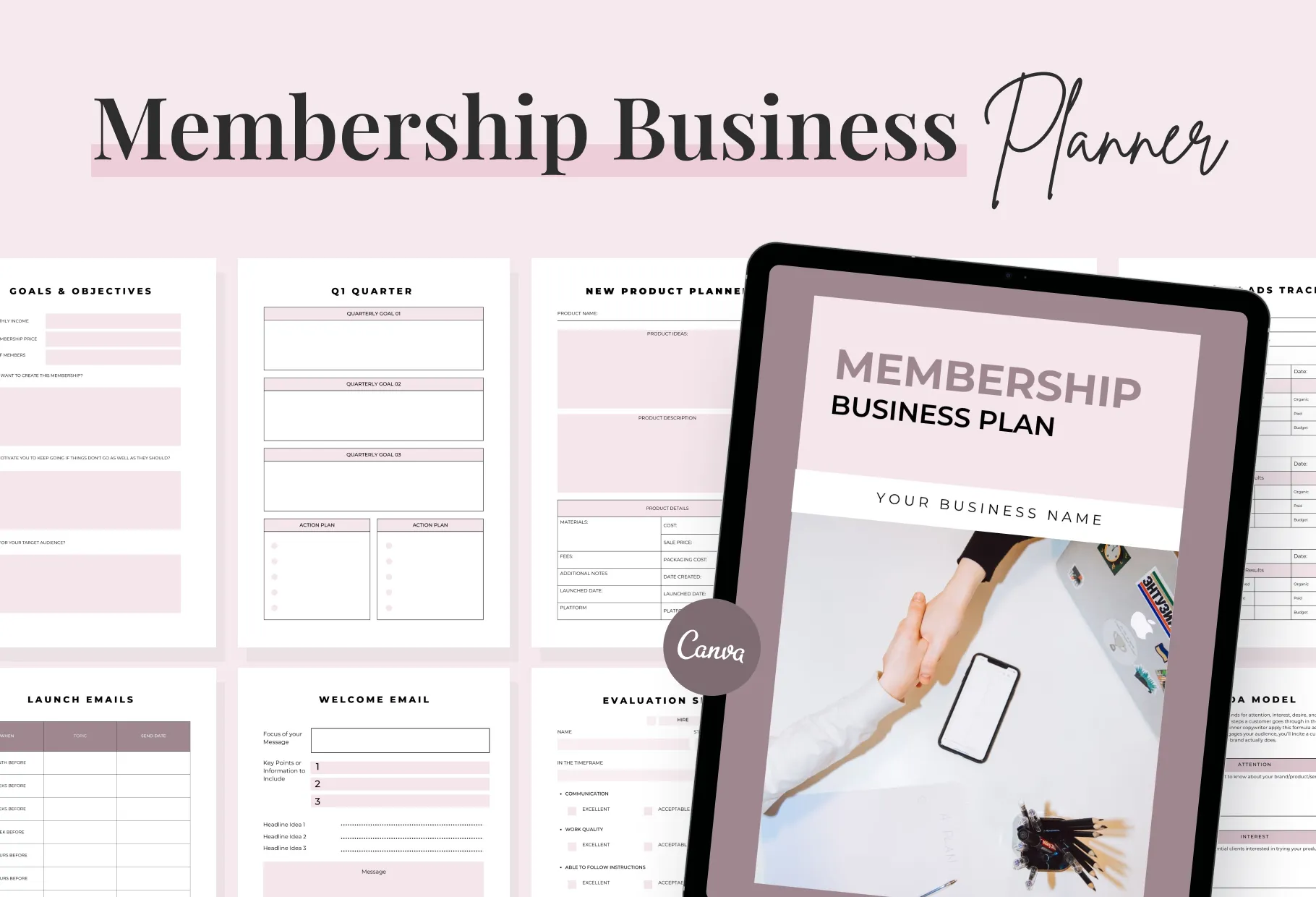Introducing my latest creation for entrepreneurs and business owners, the Membership Business Planner Canva Template. I've crafted this tool to help you navigate the complexities of managing a membership business with ease. It's filled with essential pages like Branding Kit, Business Overview, and Goals And Objectives, ensuring you have a solid foundation and clear direction for your business. I understand the struggles of juggling different aspects of a membership business. That's why I've included comprehensive sections like Self Evaluation, Target Audience, Needs And Wants, and Monthly Delivery Cycle. These will help you gain a deeper understanding of your audience and manage your business more effectively. Plus, with tools for financial and operational management such as Affiliate Products, Membership Software, and Monthly Costs, you're set up for success. Taking action is easy – just download my Membership Business Planner Canva Template! It's designed to be user-friendly and fully customizable, making it the perfect tool to elevate your business. This template is ideal for a wide range of professionals, including solo entrepreneurs, small business owners, digital marketers, membership site operators, coaches, and consultants. It's a versatile tool that can adapt to various business needs. Beyond planning, this template is a vehicle for growth. It includes strategic sections like Repeatable System, Getting Help, Hiring A VA, Competitor Research, and Program Description to help you scale your business. Plus, with marketing-focused pages like the AIDA Model and Facebook Ads Tracker, you can refine your marketing strategies for maximum impact. Remember, the Membership Business Planner Canva Template isn't just a planner – it's your roadmap to success, guiding you to more efficient management and scalable growth. Download it today and start transforming the way you manage your membership business! Branding Kit Business Overview Goals And Objectives Self Evaluation Target Audience Needs And Wants Monthly Delivery Cycle Affiliate Products Affiliates Membership Software Monthly Costs Repeatable System Getting Help Hiring A VA Job Description Test GIG Test GIG Worksheet Who Can I Work With Evaluation Sheet Competitor Research Competitor Analysis Competitor Tracker Program Description Product Planner New Product Planner Brain Dump What's In It For Me AIDA Model Facebook Ads Tracker Free Opt-In Launch Emails Welcome Emails Promote Via Affiliate Quarterly Goals