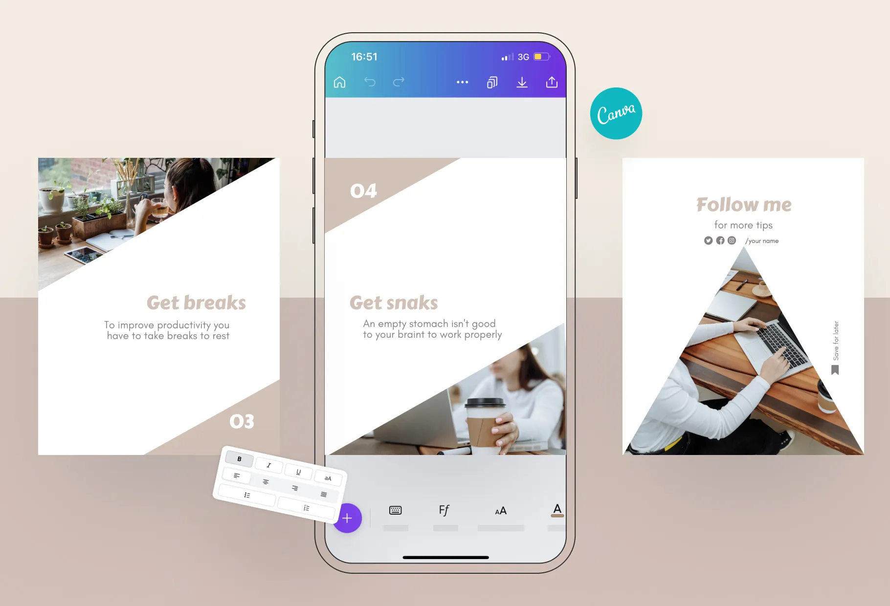 Download this set of pre-designed social media canva templates with real text to help you grow your audience with engagement boosting and share-worthy marketing designs, show up as an authority in your industry, turn followers into paying customers, and give your feed an instant boost while save you time and effort so you don't have to invest time writing or designing content from scratch.