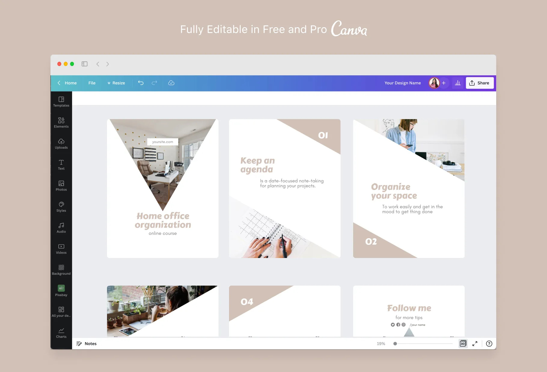 After purchasing the templates, all you need to do is create a Canva account either on your mobile device or computer. There, you will be able to access all of the Canva templates you purchased and edit them accordingly.