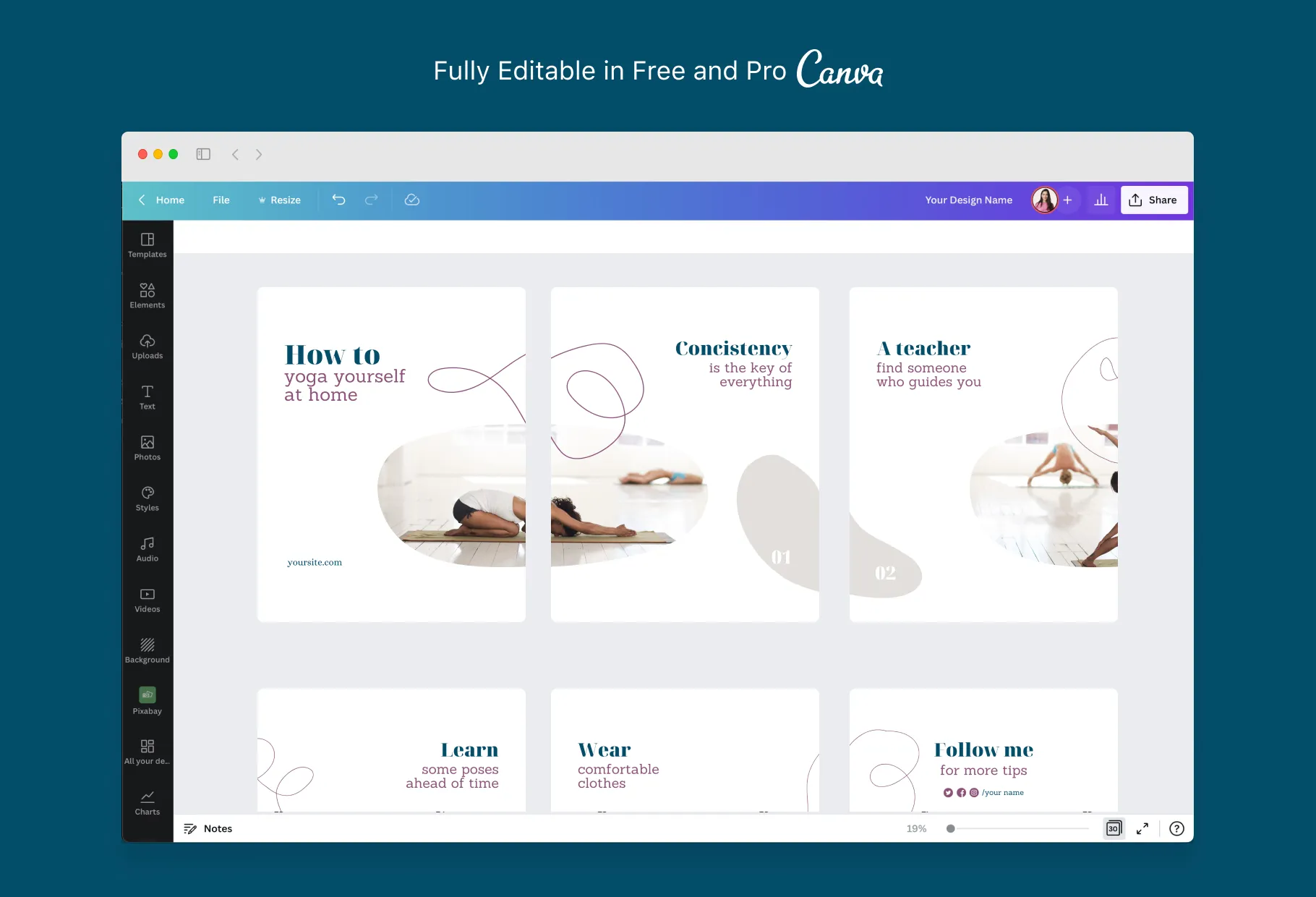 No paid Canva subscription is required in order to use our templates. In fact, the template will work with both free and Canva pro accounts. All you need to do is create an account with Canva, and you’re good to go.