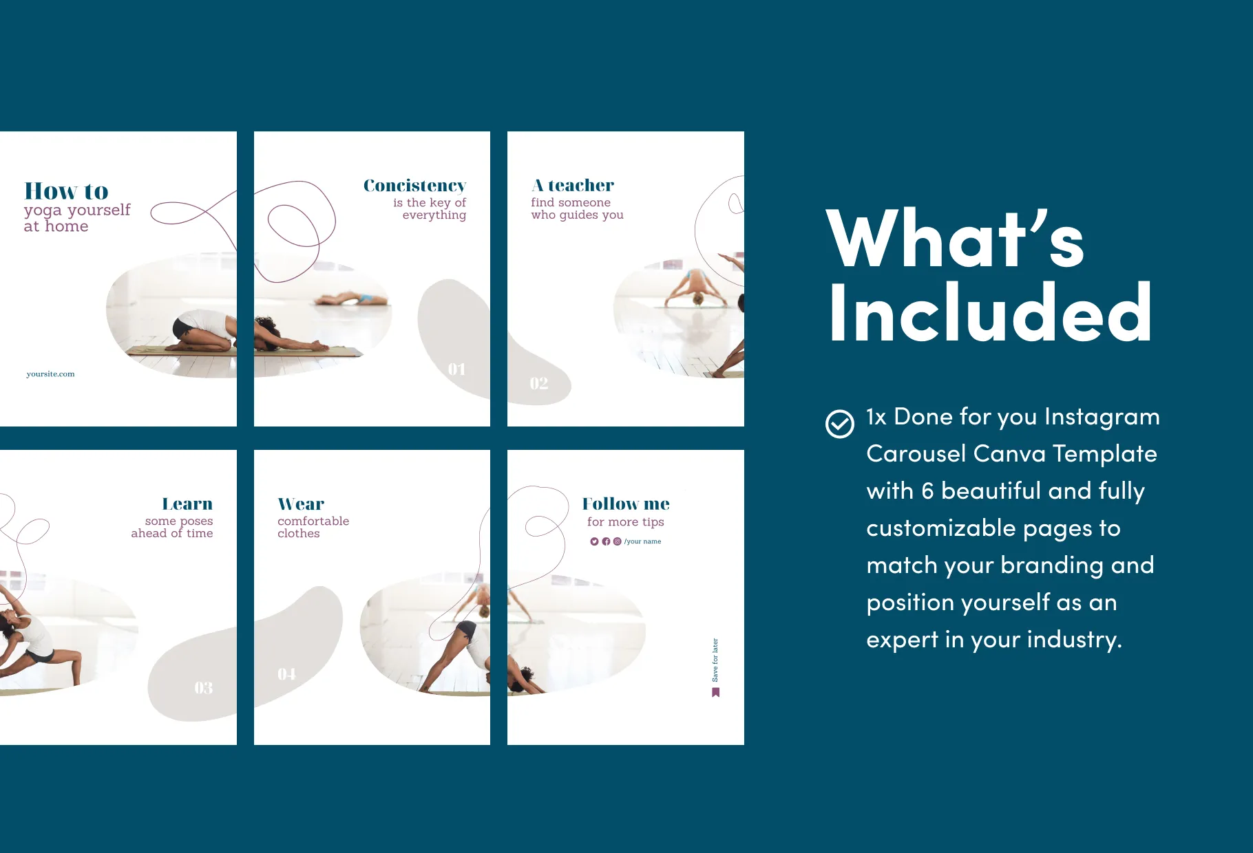 Download this set of pre-designed social media canva templates with real text to help you grow your audience with engagement boosting and share-worthy marketing designs, show up as an authority in your industry, turn followers into paying customers, and give your feed an instant boost while save you time and effort so you don't have to invest time writing or designing content from scratch.