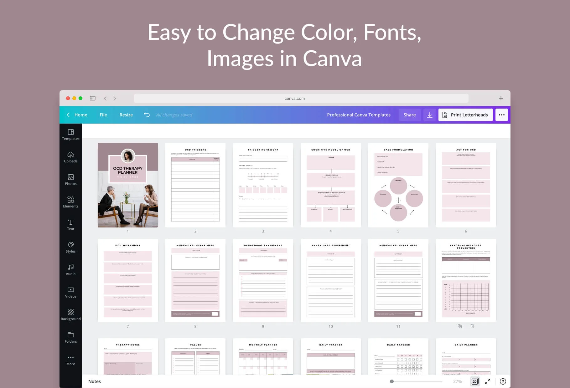 OCD Therapy Planner Canva Template for Coaches