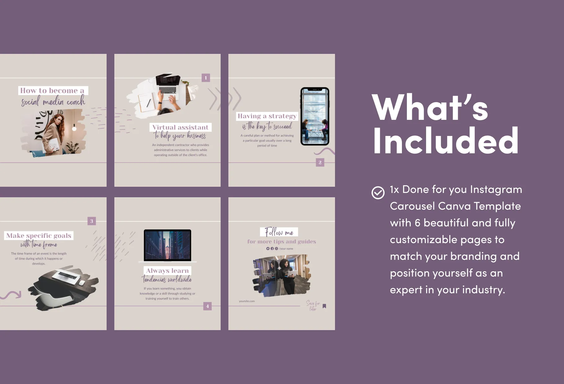 Download this set of pre-designed social media canva templates with real text to help you grow your audience with engagement boosting and share-worthy marketing designs, show up as an authority in your industry, turn followers into paying customers, and give your feed an instant boost while save you time and effort so you don't have to invest time writing or designing content from scratch.