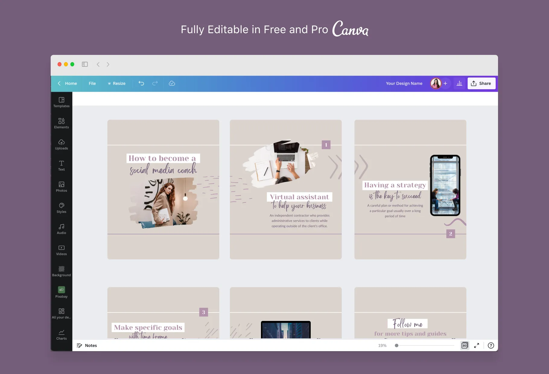 After purchasing the templates, all you need to do is create a Canva account either on your mobile device or computer. There, you will be able to access all of the Canva templates you purchased and edit them accordingly.