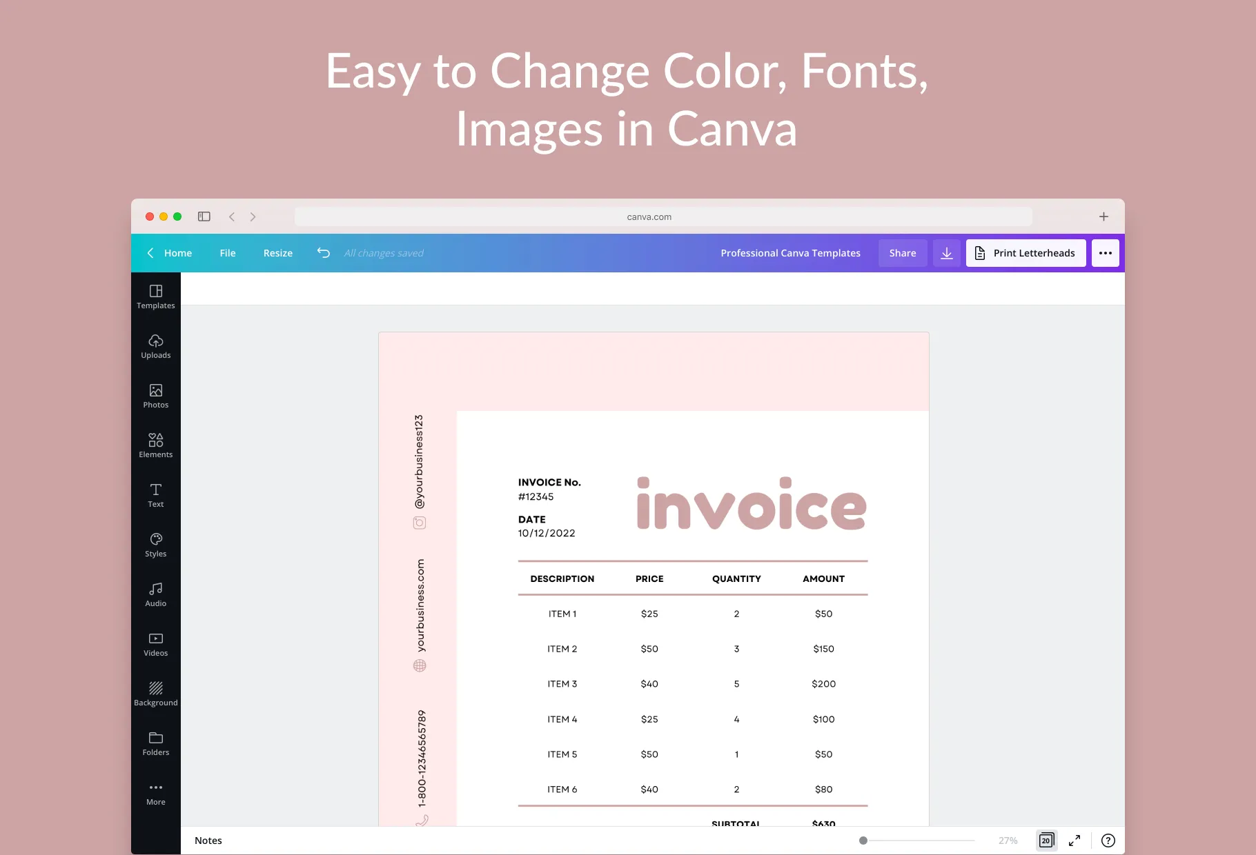 The best part is that you don’t need any special software in order to use Canva. The website is available as an app for Android and Apple devices, as well as an app for Windows and iOS computers, making it easier than ever to make your templates into something that will make your business visuals go from mediocre to mind blowing. In fact, over 70% of marketers use visuals in their marketing strategy, which is why we tried to make it as easy and accessible as possible to use our templates.