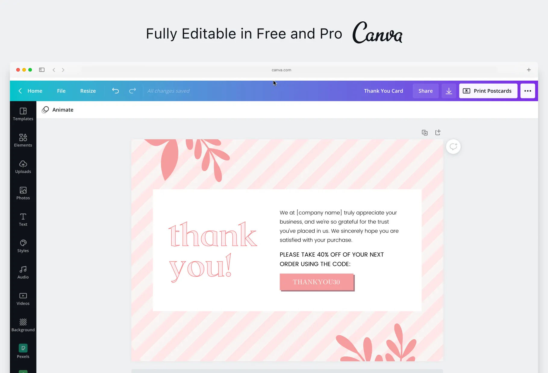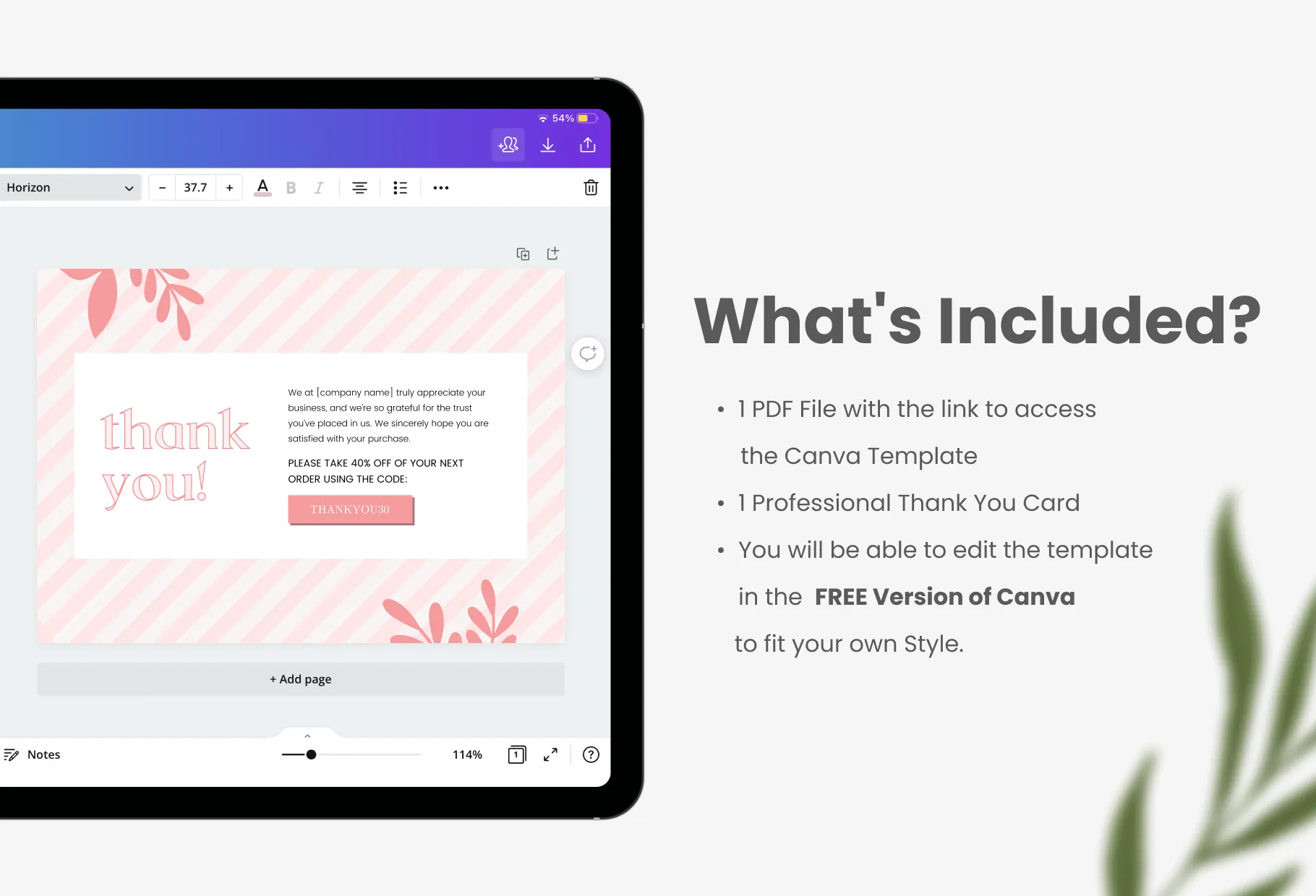 Thank You Cards are the best way to keep your customers coming back for more! Most sellers are too busy running their businesses to take time out for sending thank-you cards after every sale. A small gesture like sending a thank you card can make all the difference in how your customer feels about their purchase, and if they'll return again! This is especially important when selling online or on marketplaces where it's harder to build trust and rapport with buyers. Inserting a Thank you Card is a great way to show that you care about them and their experience with your business. But, designing the perfect card can be hard! This printable template will save you hours of time – just download the template file, import it to your free Canva account, fill in the blanks, add your logo, customize colors, fonts, or text styles without hiring someone else to do it for you! - It's super easy even if you don't have graphic design skills! Encourage repeat sales with this professional-looking thank you card for CANVA. This listing is for the digital files only*** No physical product will be sent.