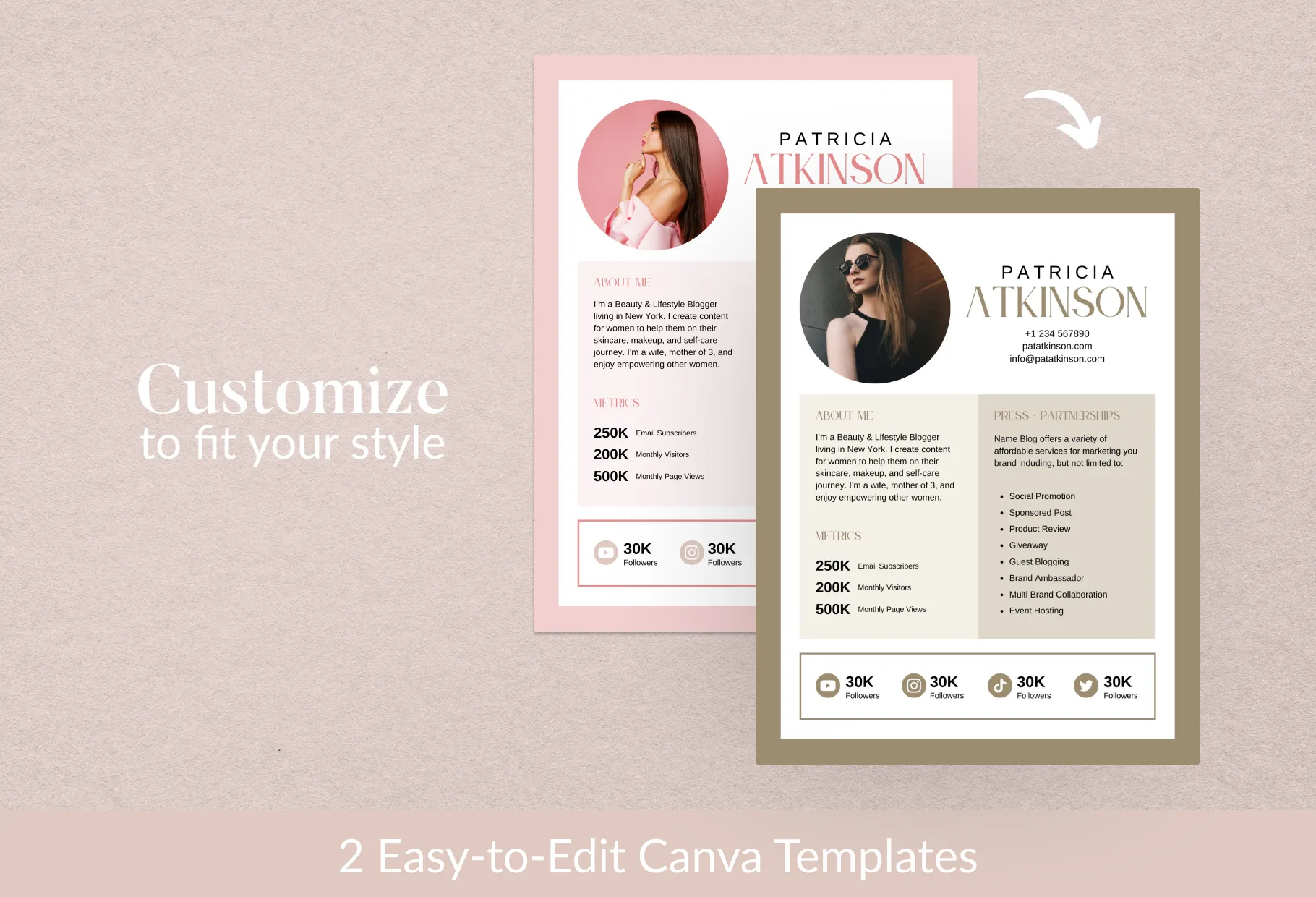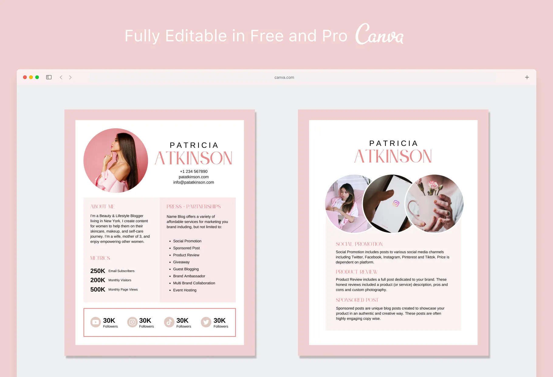 Do you have a blog, podcast or YouTube channel? If so, then you know how important it is to market yourself and your content. But creating Media Kits can be time-consuming and difficult. That’s why I created this beautiful media kit template for influencers. It’s easy to customize with Canva, making it the perfect tool for any business owner who wants to stand out from their competitors. Download Now.