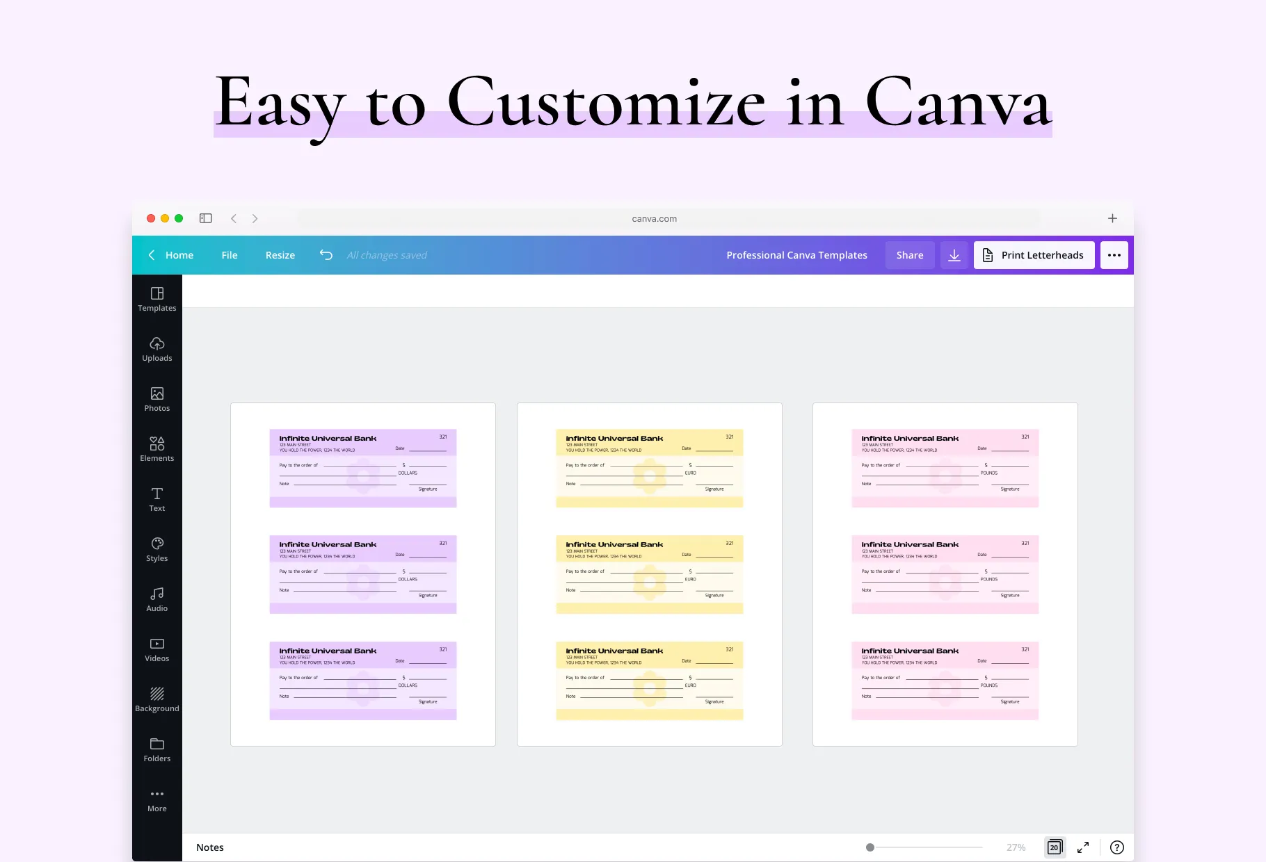 After purchasing the templates, all you need to do is create a Canva account either on your mobile device or computer. There, you will be able to access all of the Canva templates you purchased and edit them accordingly.