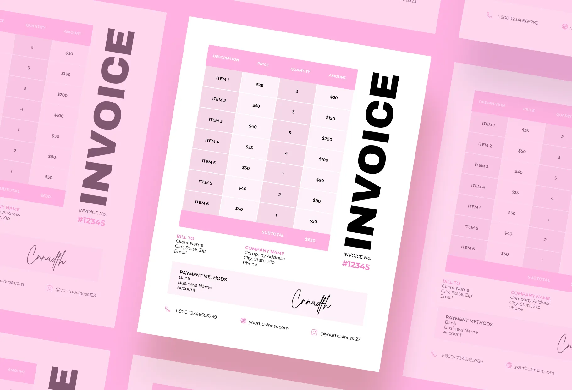 Invoices are an essential part of running a business, but they don't have to be boring. With this Invoice Canva template you can create your own custom invoices that are both professional and eye-catching. With just a few clicks, you can add your logo, contact information, and even a personal message. Plus, it's fully compatible with Canva's easy-to-use design tools, so you can easily make any further changes or adjustments that you need. So why not download this Printable and Editable Invoice Template for CANVA now and start making a great impression with your clients today?