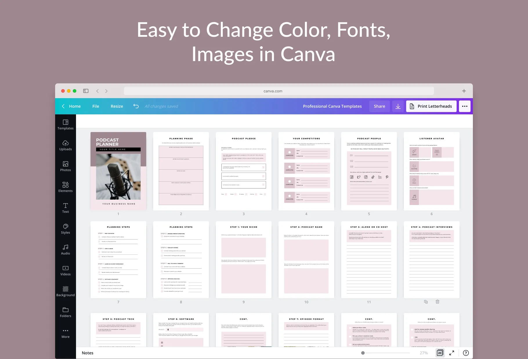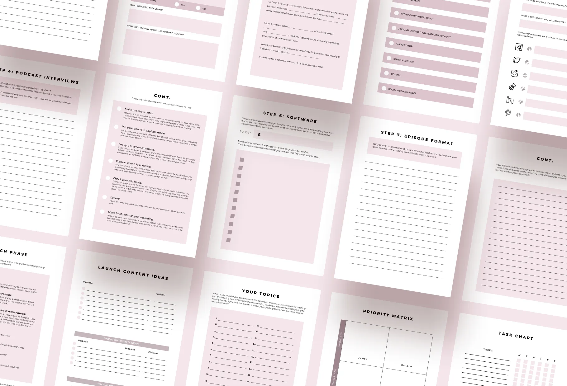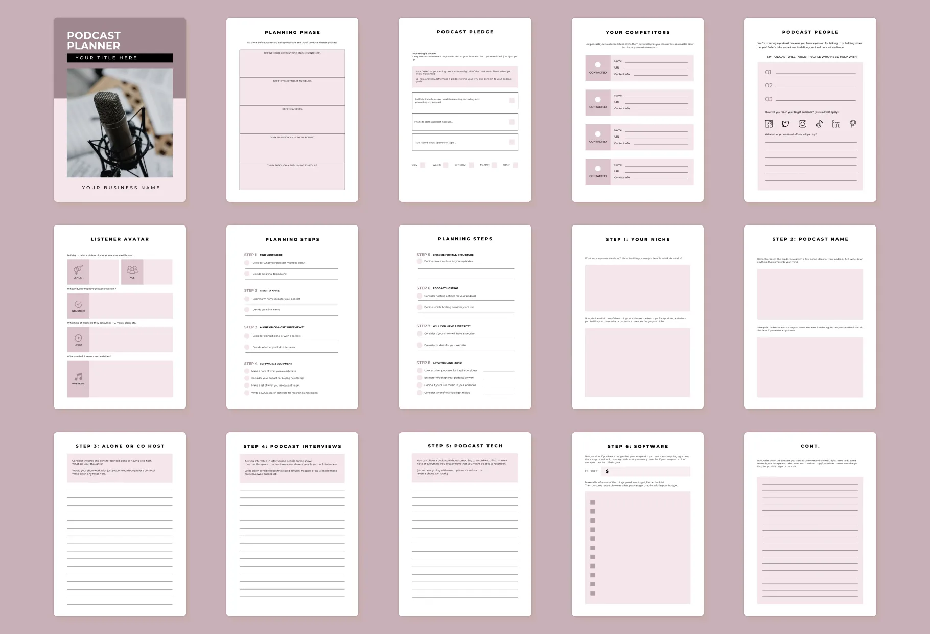 Ever felt overwhelmed with all the tiny details of launching and managing your podcast? Yeah, I’ve been there. The process can be daunting with so much to think about from content planning to the tech side of things. Imagine pouring hours into your podcast, only to realize you've overlooked some crucial steps. Maybe you forgot to plan guest interviews, or you didn't think through the branding. Frustrating, right? I know the feeling all too well. That’s why I created my Podcast Planner Canva Template. It’s a comprehensive guide, designed specifically to take the guesswork out of podcasting. From the very early planning phase, right up to launch, this template has got you covered. Here's a sneak peek of some of the pages inside: Planing Phase Podcast Pledge Your Competitors Podcast People Listener Avatar Planning Steps Step 1: Your Niche Step 2: Podcast Name Step 3: Alone Or Host Step 4: Podcast Interviews Step 5: Podcast Tech Step 6: Software Step 7: Format Hosting Options Website Artwork And Music Podcast Branding Podcast Materials Invite Podcast Guests Invite Influencers Production Checklist Launch Content Ideas Others Who can benefit from this template? - First-time podcasters looking for direction. - Experienced podcasters wanting to streamline their process. - Brands aiming to expand into the podcasting space. - Content creators branching out to audio content. - Course creators or coaches adding podcasting to their toolkit. So, ready to make podcasting a breeze? Download my Podcast Planner Canva Template now and let's get your show on the road!