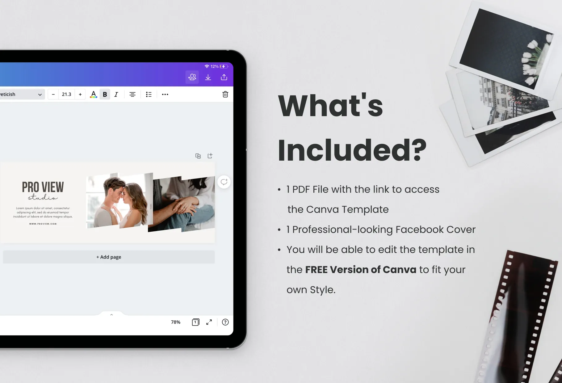 Pro View Studio Facebook Cover for Photographers Editable Canva Template