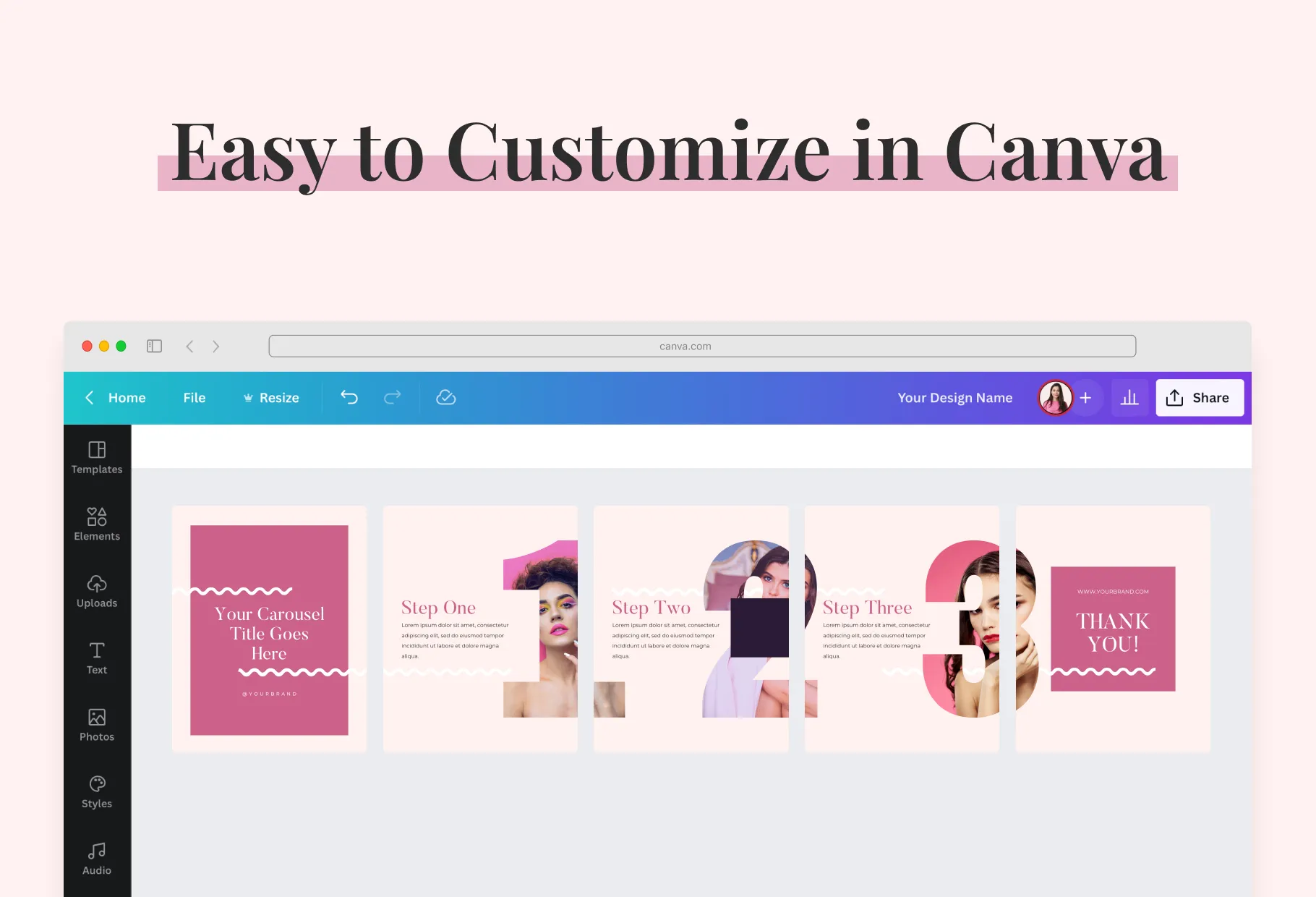 After purchasing the templates, all you need to do is create a Canva account either on your mobile device or computer. There, you will be able to access all of the Canva templates you purchased and edit them accordingly.