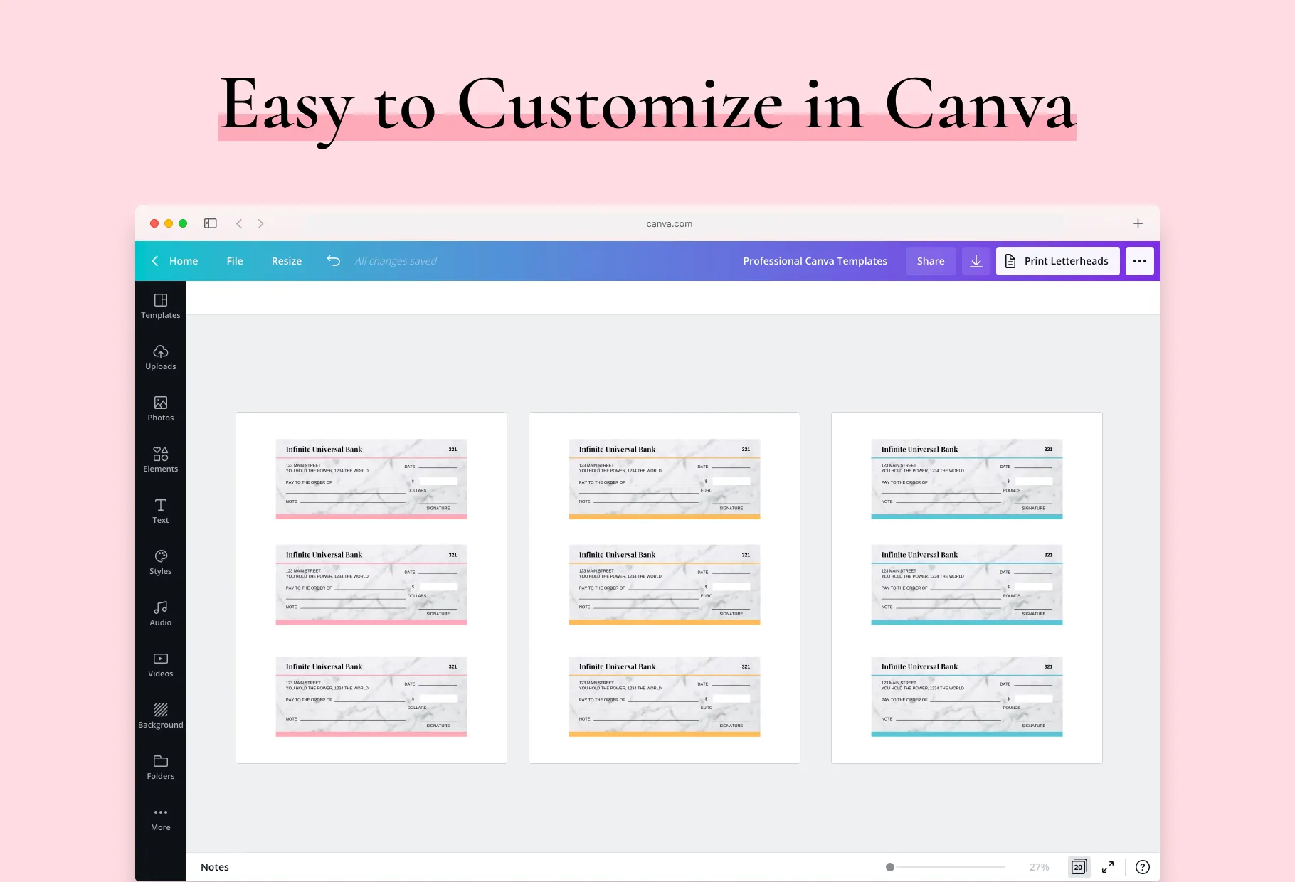 After purchasing the templates, all you need to do is create a Canva account either on your mobile device or computer. There, you will be able to access all of the Canva templates you purchased and edit them accordingly.