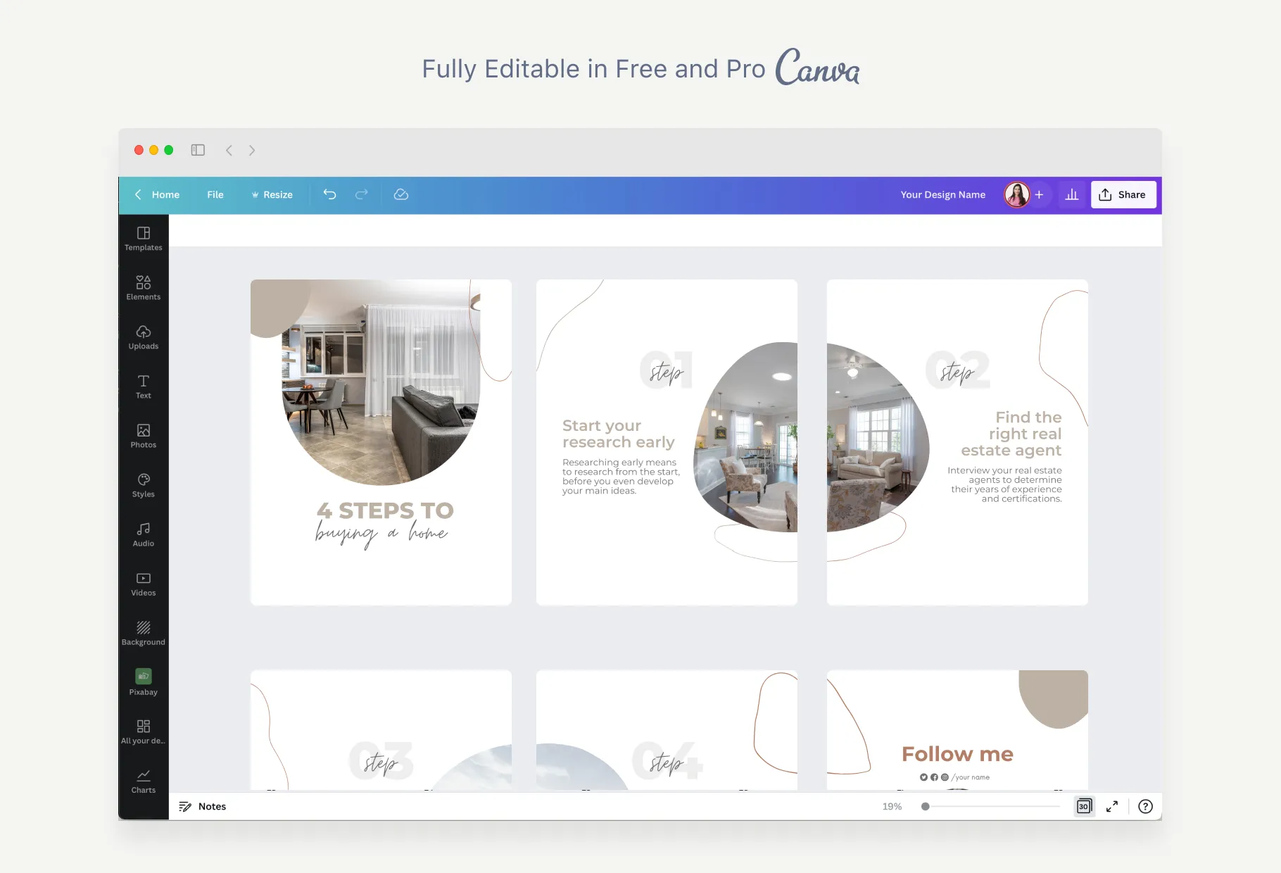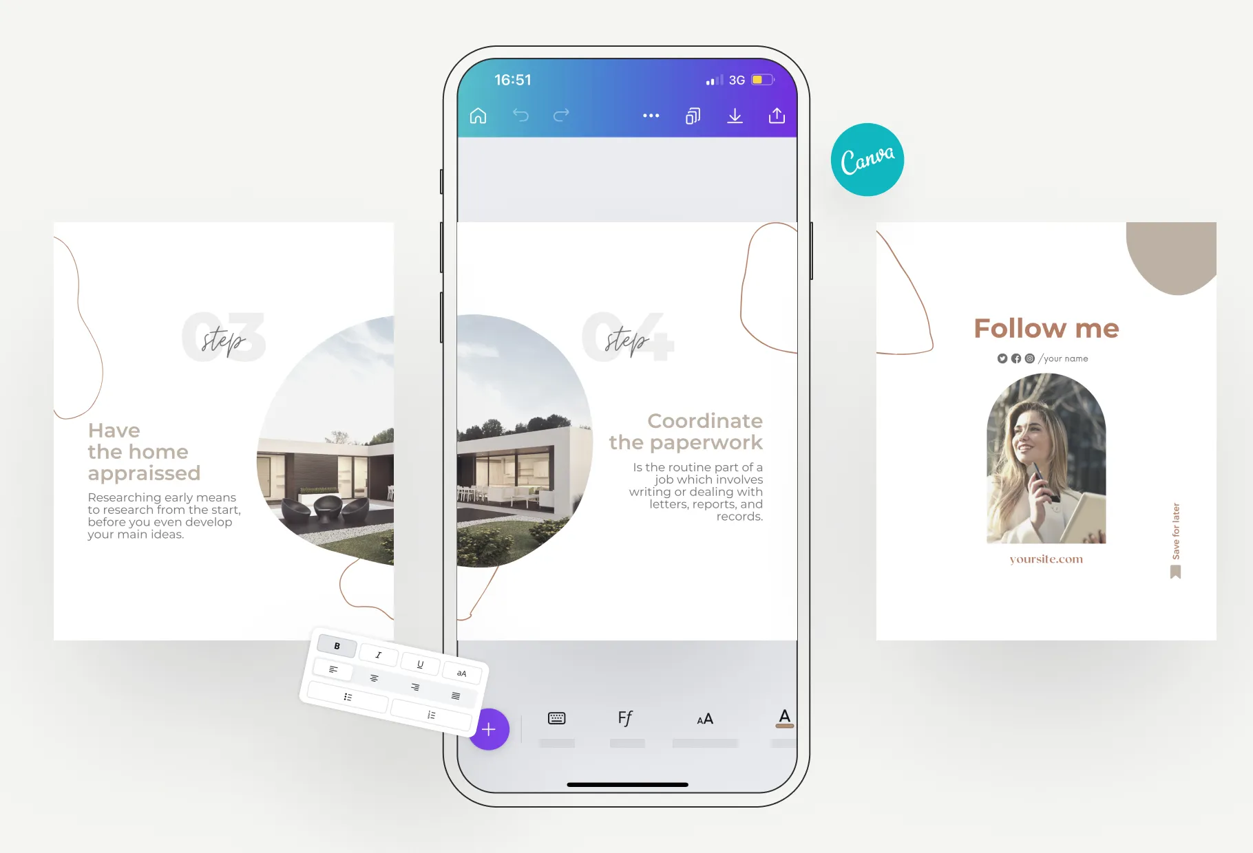 After purchasing the templates, all you need to do is create a Canva account either on your mobile device or computer. There, you will be able to access all of the Canva templates you purchased and edit them accordingly.