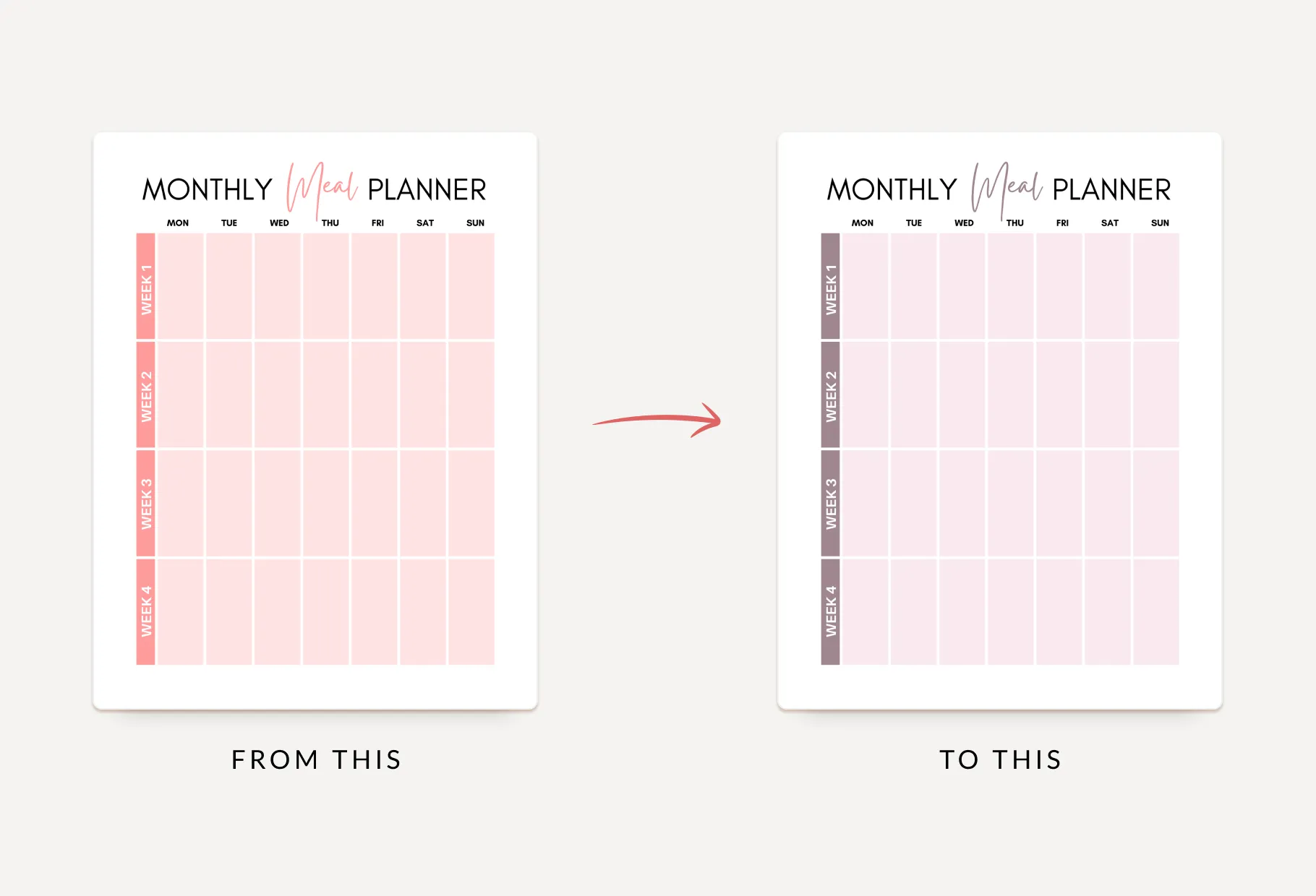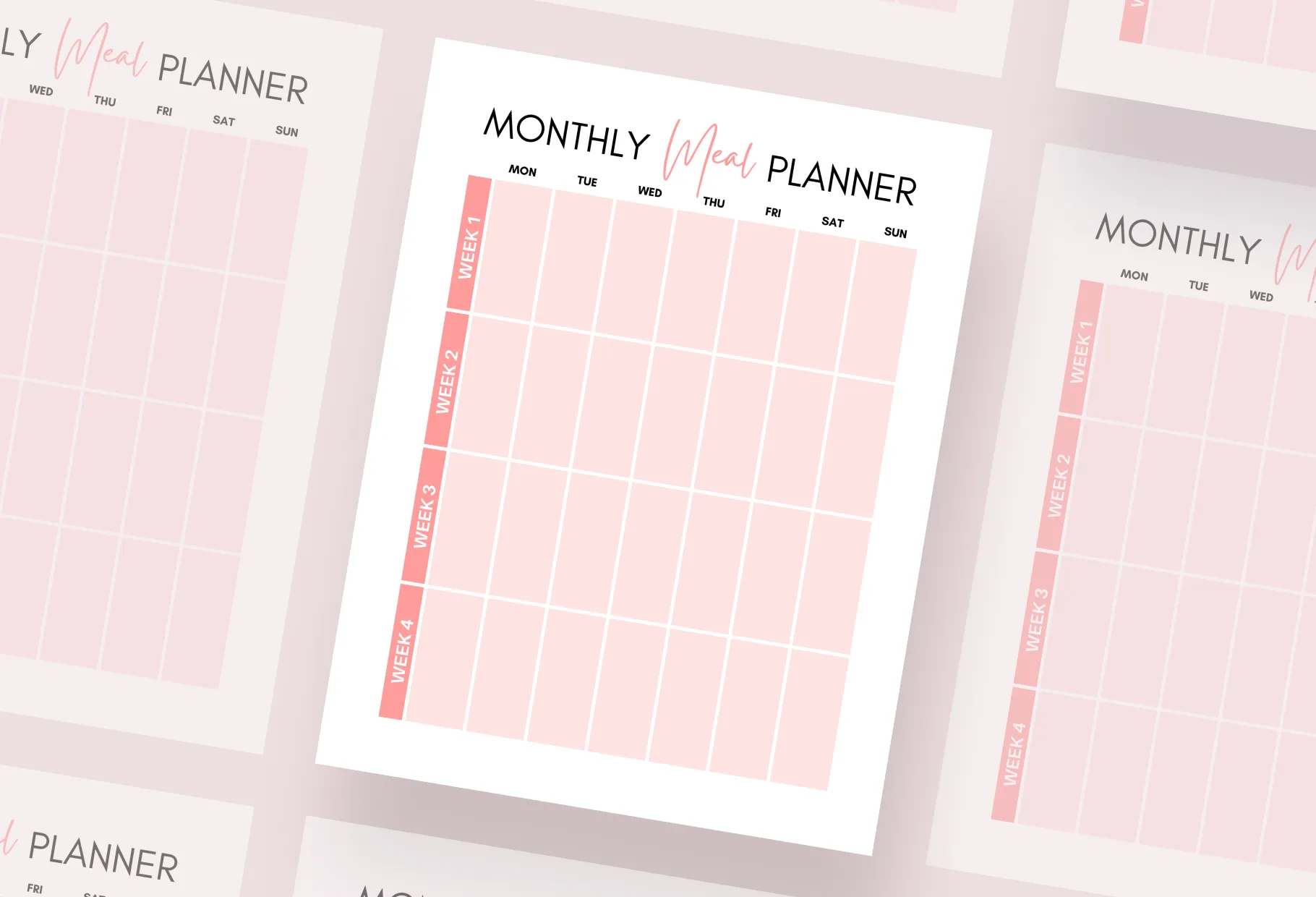 Salmon Rose Monthly Meal Plan Calendar Printable and Editable Canva Template