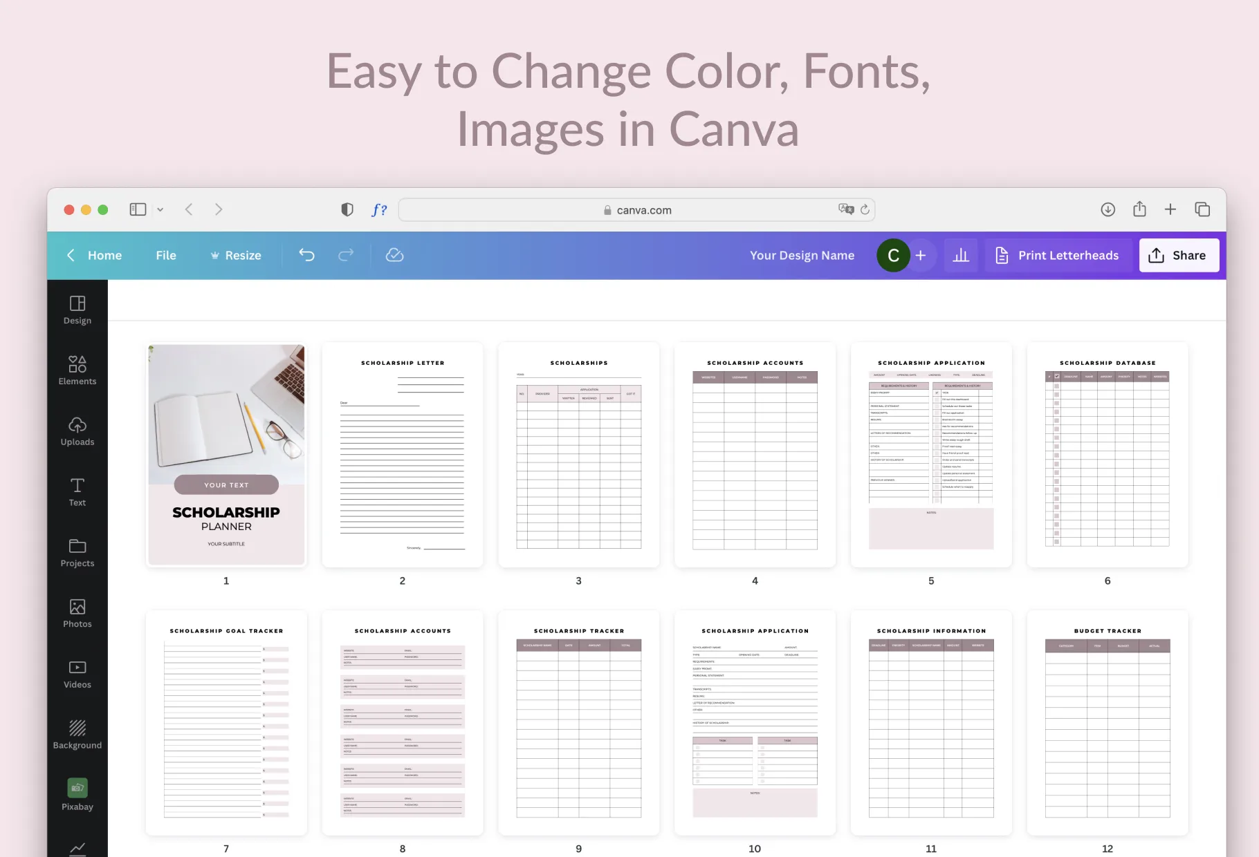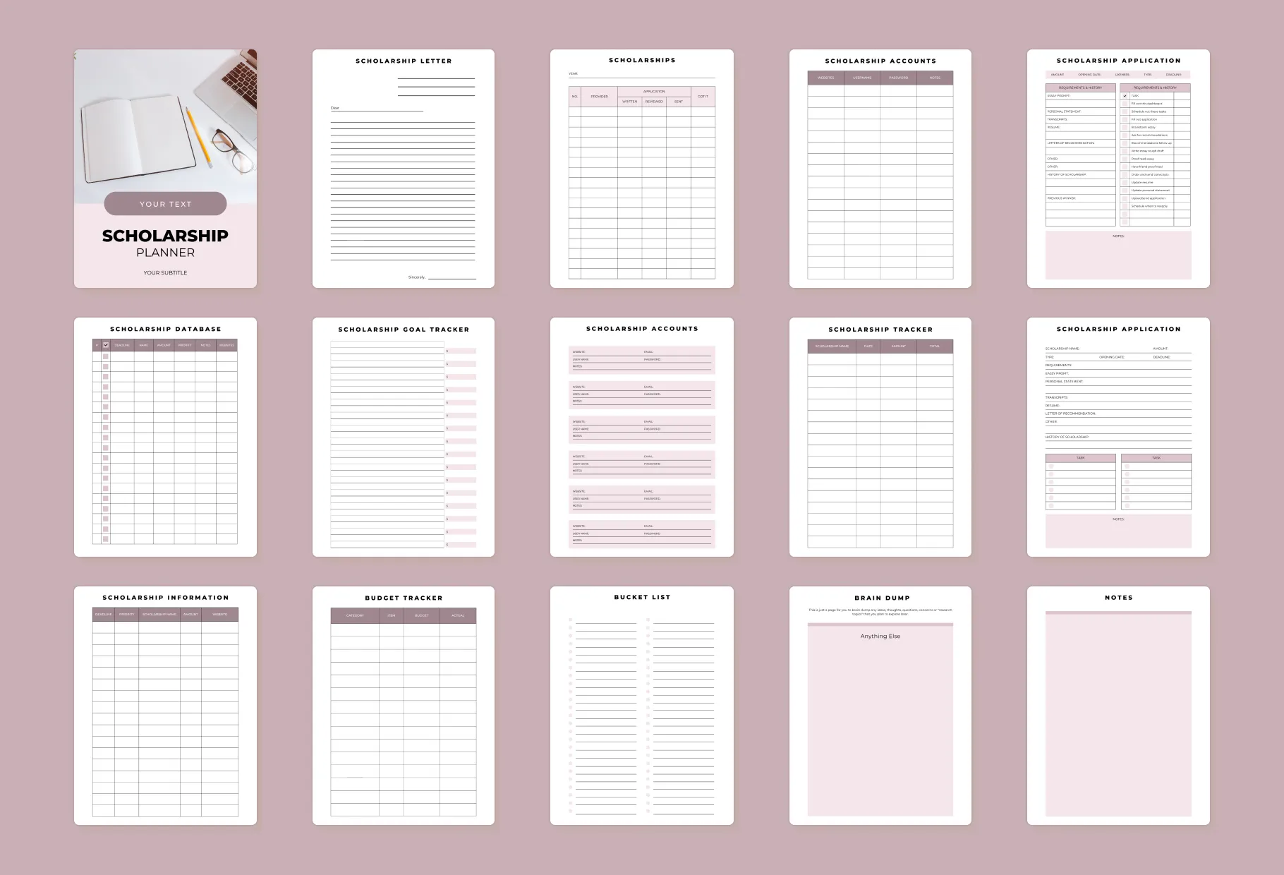 Are you in the process of applying for university scholarships? If yes, I made this Scholarship Planner Canva Template with you in mind. Whether you’re a school counselor, mentor or student, it’s the perfect tool for staying organized and on top of your applications. With this planner, there’s no need to worry about forgetting any important details. It offers everything you need to make sure you create and write the best scholarship application possible. Inside this planner template, you’ll find handy pages including trackers, lists, and tables to help keep you on track. Plus, with personalized scholarship information specific to you or your student’s needs, it couldn’t be easier. With Canva, it’s totally customizable so you can make sure everything looks perfect. Scholarship Letter Scholarships Scholarship Accounts Scholarship Application Scholarship Tracker Scholarship Goal Tracker Scholarship Database Scholarship Information Budget Tracker Bucket List Brain Dump Notes