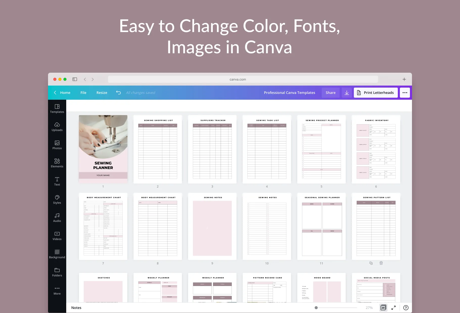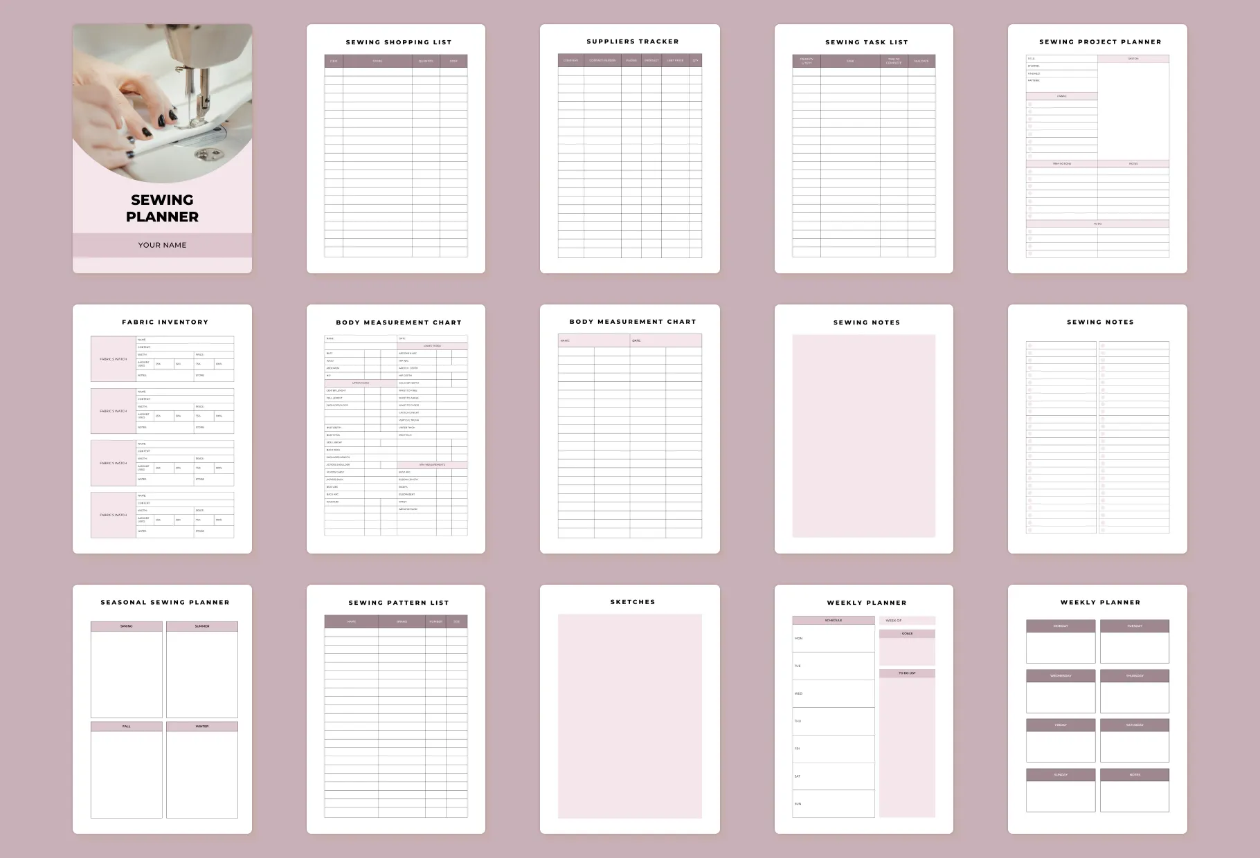 Ready to up your sewing game and turn those tangled threads of ideas into streamlined masterpieces? I get it. There’s a maze of fabrics, patterns, and plans that can cloud our sewing vision. It’s easy to lose track, miss deadlines, or just forget those brilliant project ideas. Every sewist, at some point, has been trapped in the overwhelming mess of scattered supplies and mismatched patterns. And if you're anything like me, you've wished for a magic tool to keep everything on track. Well, wish no more! I've crafted the perfect solution with my Sewing Planner Canva Template. It's not just any template; it's your sewing journey's new best friend. With pages like the Sewing Shopping List, Sewing Project Planner, and Mood Board, you’ll have everything at your fingertips. Whether it's tracking suppliers, noting down body measurements, or brainstorming for your next YouTube video, this template covers all bases. So, who's going to love this planner? The weekend sewing warriors looking for some structure. Professional tailors aiming to keep everything in check. Sewing bloggers and YouTubers ready to plan their content. Fashion design students wanting a head start. DIY enthusiasts, ready to dive into the sewing world. Boutique owners and indie designers wanting clarity in their creations. Why let chaos rule when you can stitch your way to success? Download my template now. After all, sewing is an art, and every artist deserves their perfect canvas. Let this be yours. Sewing Shopping List Suppliers Tracker Sewing Task List Sewing Project Planner Fabric Inventory Body Measurement Chart Sewing Notes Seasonal Sewing Planner Sewing Pattern List Sketches Weekly Planner Pattern Record Card Mood Board Social Media Posts Youtube Video Ideas Yearly Sewing Goals Sewing Challenges What I Made In Pattern Wishlist Dream Ideas Front Back Sewing To Do List Blog Post Ideas Inspiration Monthly Sewing Others Remember! A stitch in time (and a bit of planning) saves nine. So, let's get you sewing smarter, not harder!
