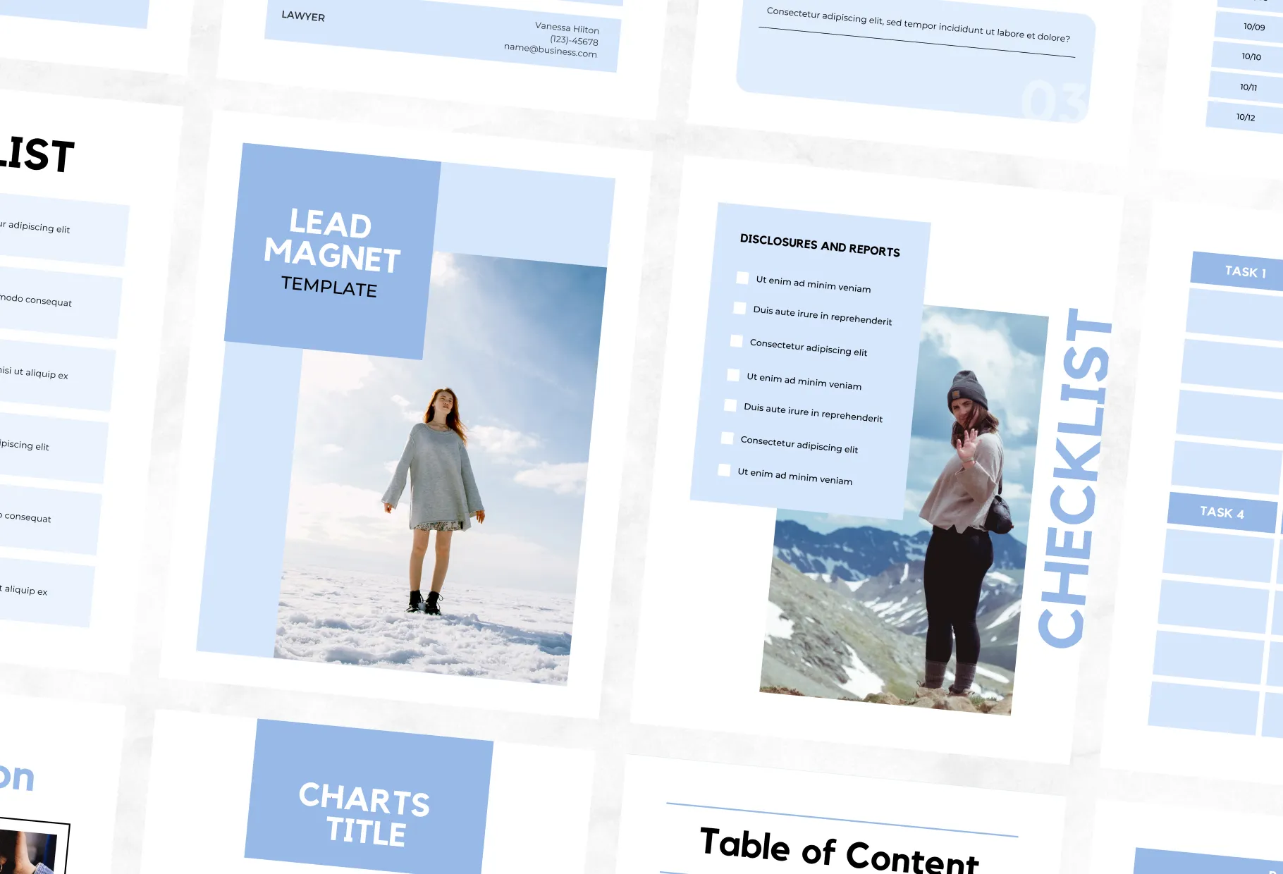 The Only Thing Standing Between YOU and YOUR EMAIL LIST … is a LEAD MAGNET! This Lead Magnet Template Bundle is perfect for anyone looking to grow their online business. Whether you're a blogger, coach, consultant, or any other type of small-business owner - this lead magnet bundle has been designed with YOU in mind! WHAT'S INCLUDED: 4 Cover Design 3 Checklist Design 3 Cheatsheet Design 3 Worksheet Design Planner Overview Step Process Roundup 2 Call Action Designs Note Page 3 Content Pages Blueprint Thank You Page