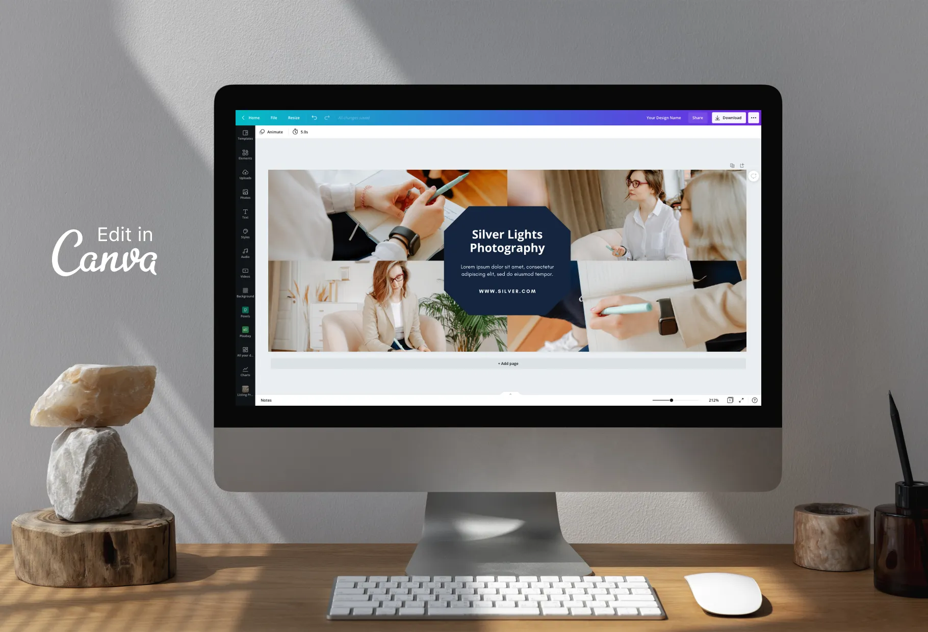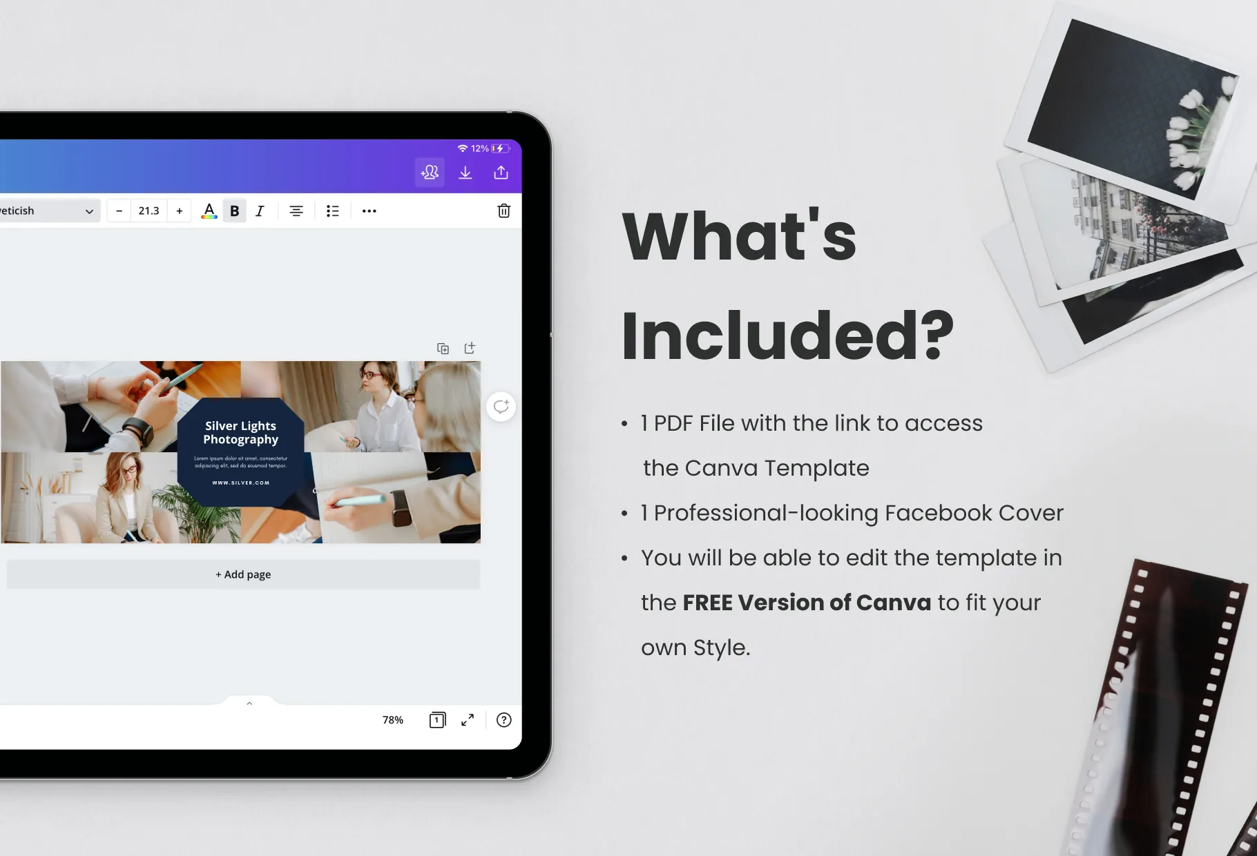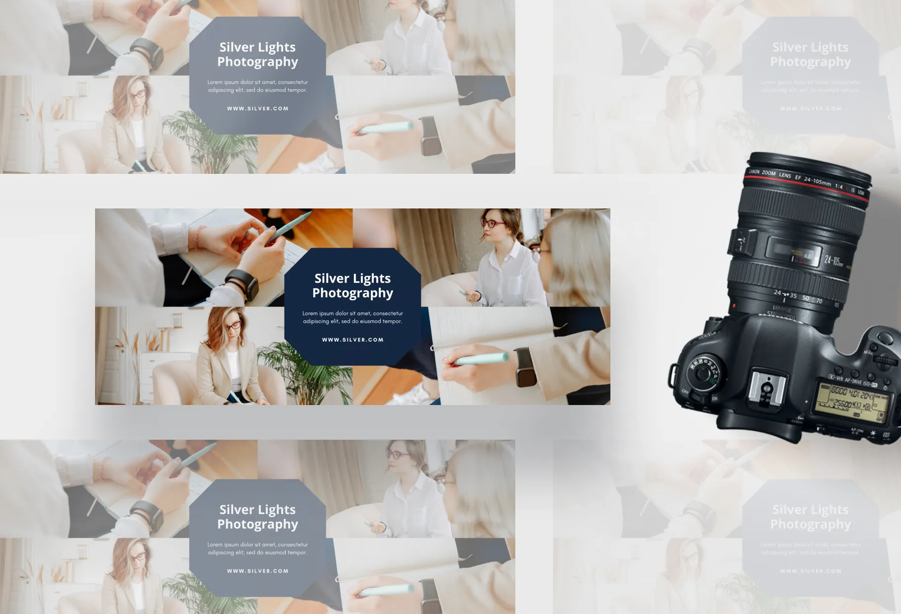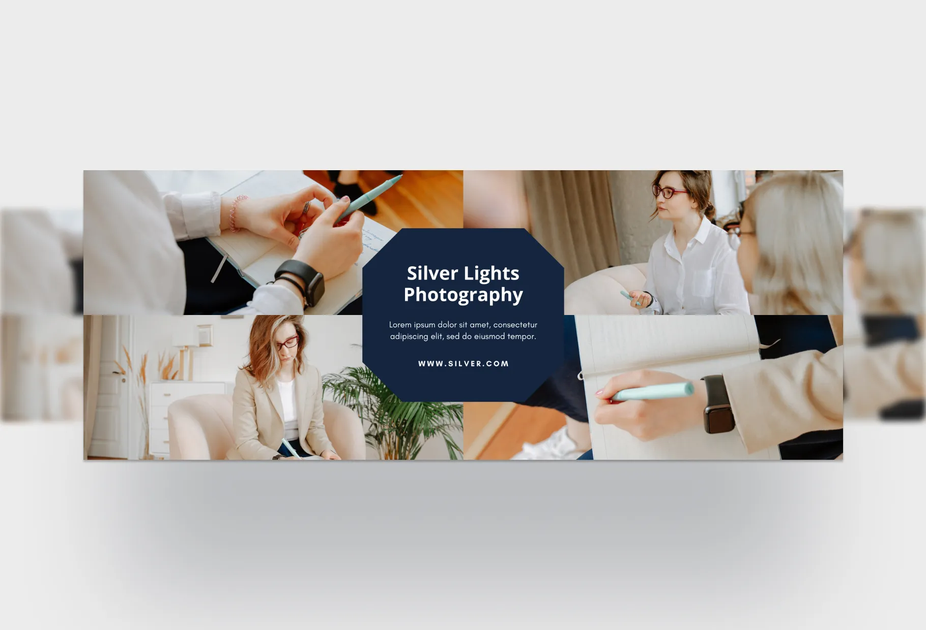 Silver Lights Facebook Cover for Photographers Editable Canva Template
