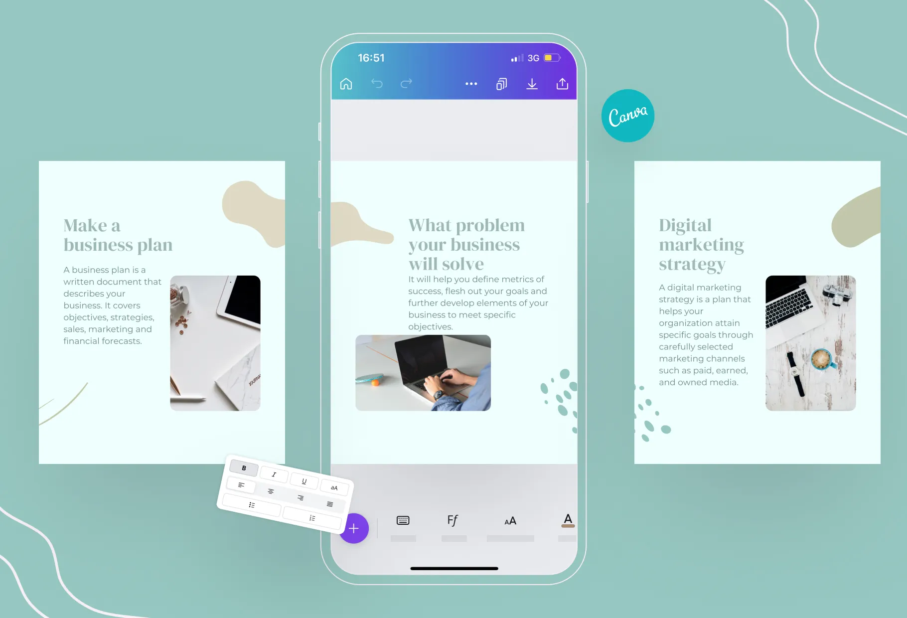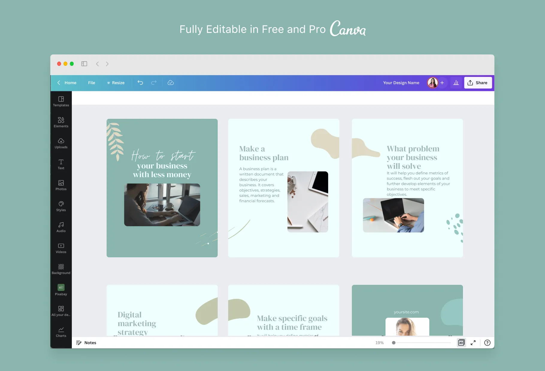 After purchasing the templates, all you need to do is create a Canva account either on your mobile device or computer. There, you will be able to access all of the Canva templates you purchased and edit them accordingly.