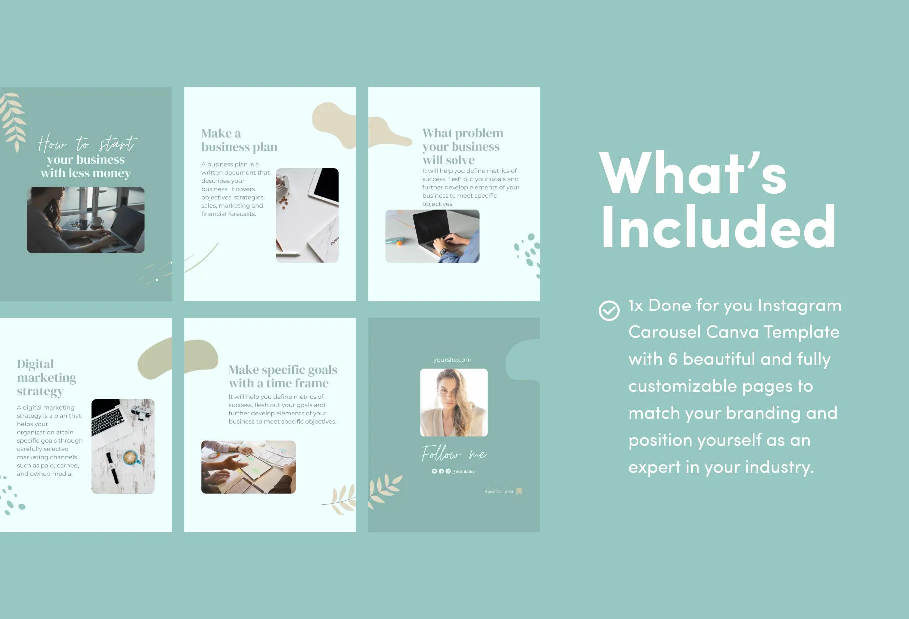 Download this set of pre-designed social media canva templates with real text to help you grow your audience with engagement boosting and share-worthy marketing designs, show up as an authority in your industry, turn followers into paying customers, and give your feed an instant boost while save you time and effort so you don't have to invest time writing or designing content from scratch.