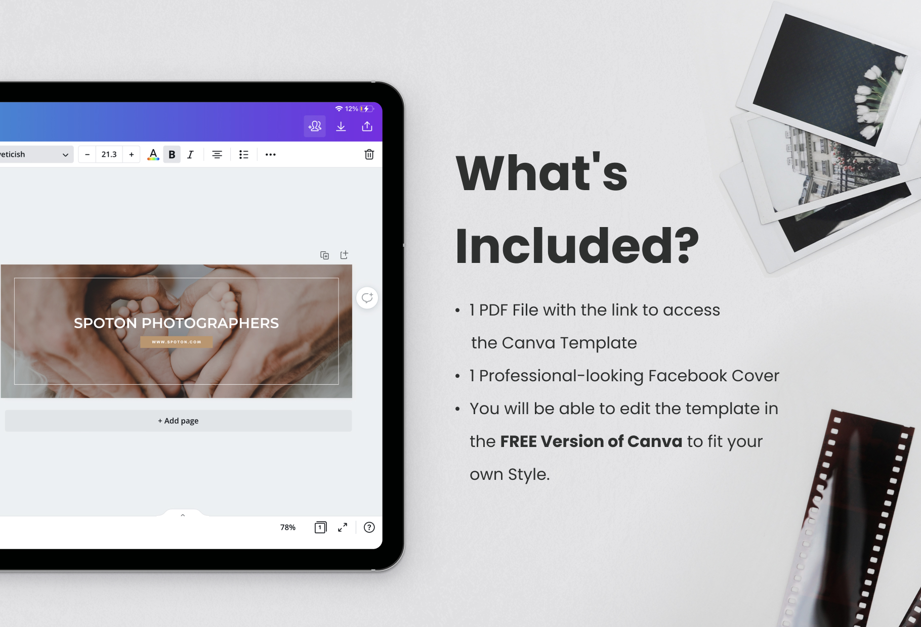 SpotOn Facebook Cover for Photographers Editable Canva Template