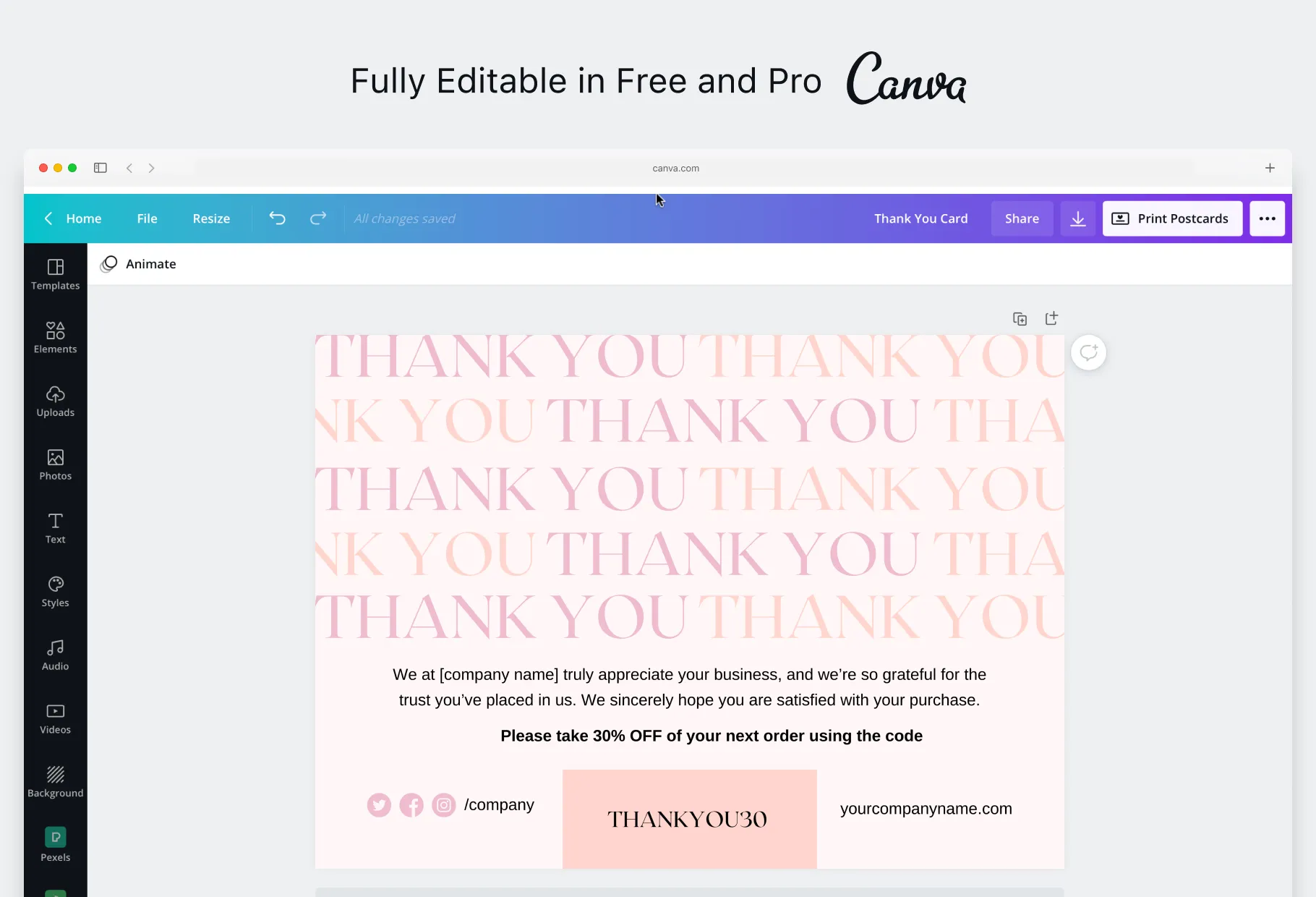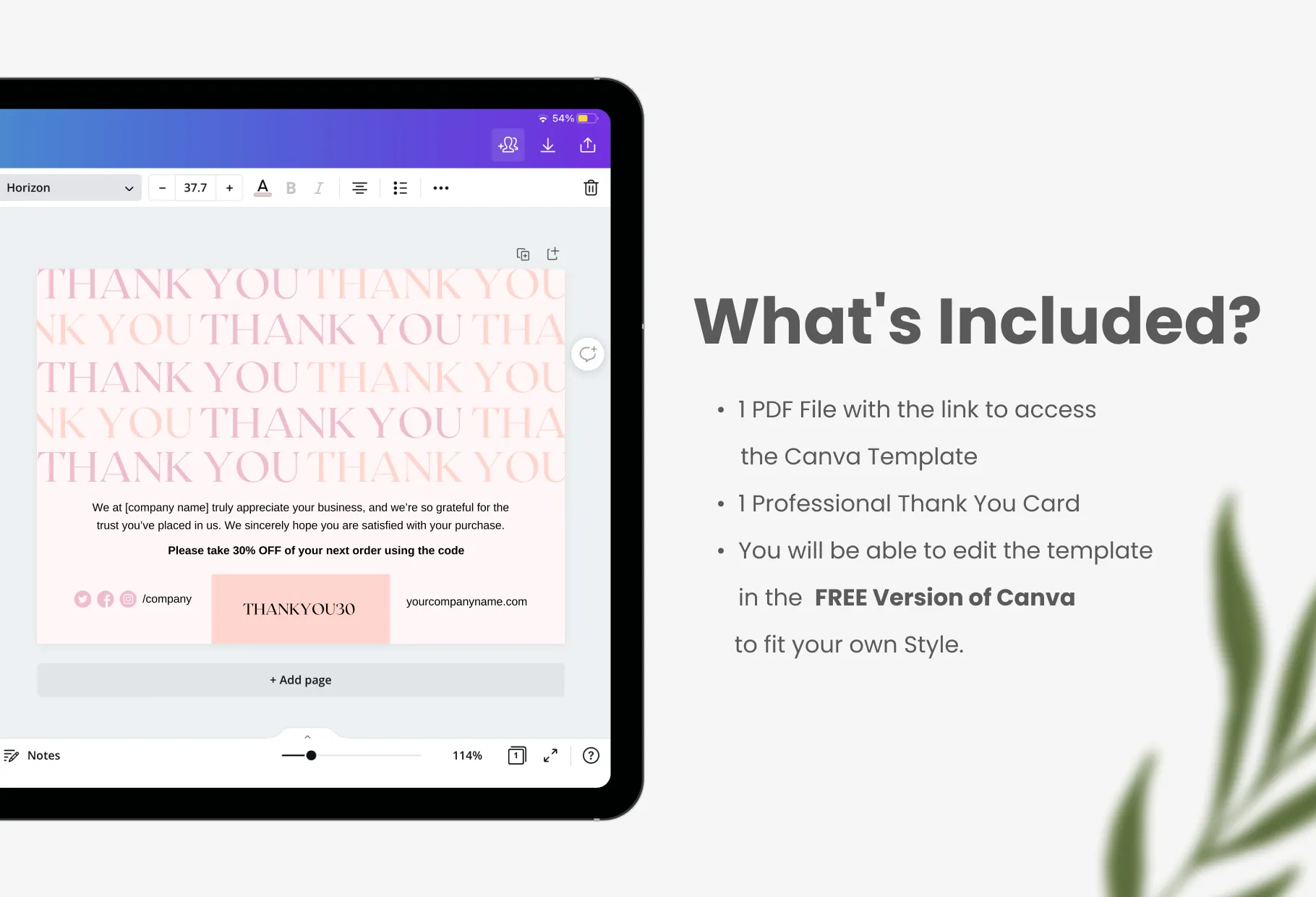 Thank You Cards are the best way to keep your customers coming back for more! Most sellers are too busy running their businesses to take time out for sending thank-you cards after every sale. A small gesture like sending a thank you card can make all the difference in how your customer feels about their purchase, and if they'll return again! This is especially important when selling online or on marketplaces where it's harder to build trust and rapport with buyers. Inserting a Thank you Card is a great way to show that you care about them and their experience with your business. But, designing the perfect card can be hard! This printable template will save you hours of time – just download the template file, import it to your free Canva account, fill in the blanks, add your logo, customize colors, fonts, or text styles without hiring someone else to do it for you! - It's super easy even if you don't have graphic design skills! Encourage repeat sales with this professional-looking thank you card for CANVA. This listing is for the digital files only*** No physical product will be sent.
