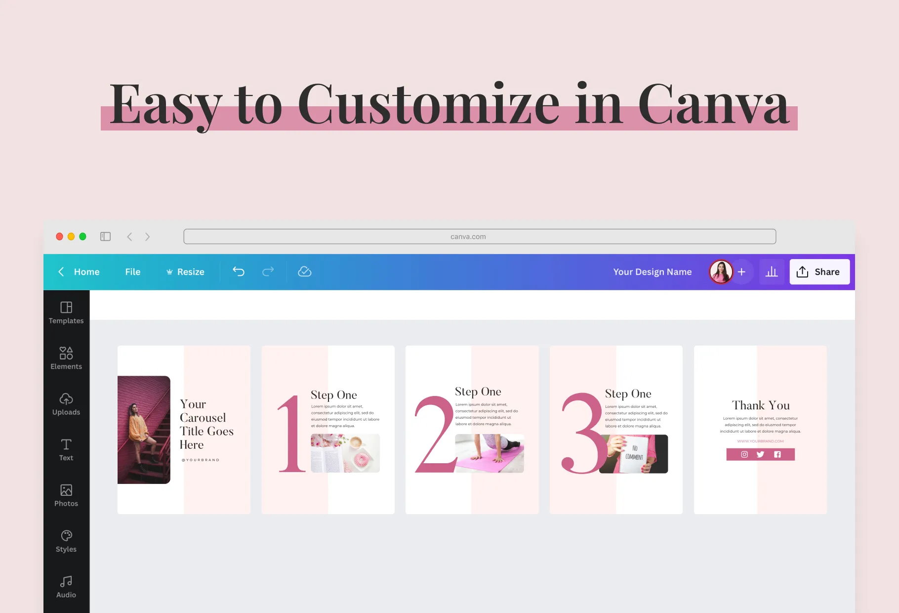 After purchasing the templates, all you need to do is create a Canva account either on your mobile device or computer. There, you will be able to access all of the Canva templates you purchased and edit them accordingly.