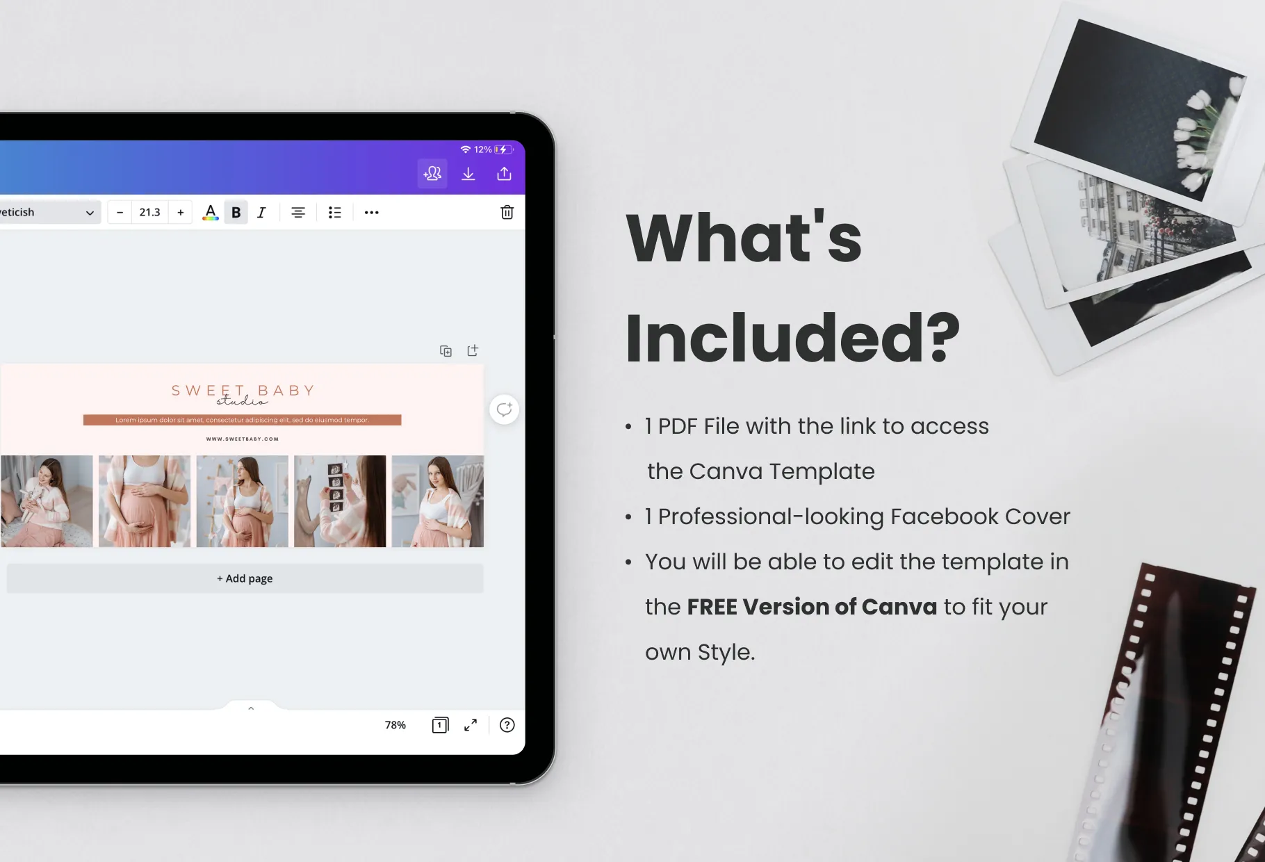 Sweet Baby Studio Facebook Cover for Photographers Editable Canva Template