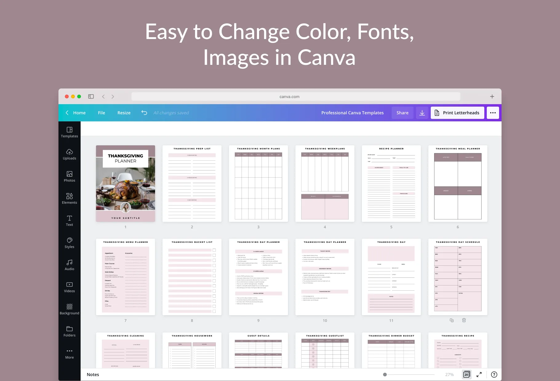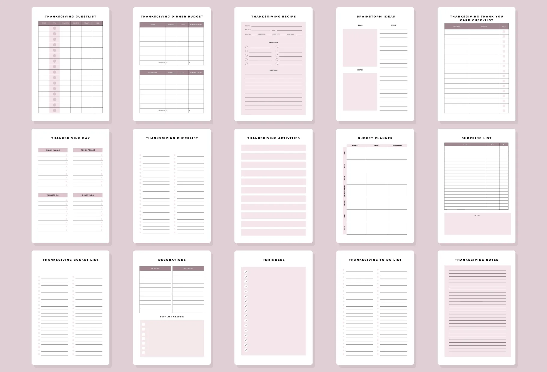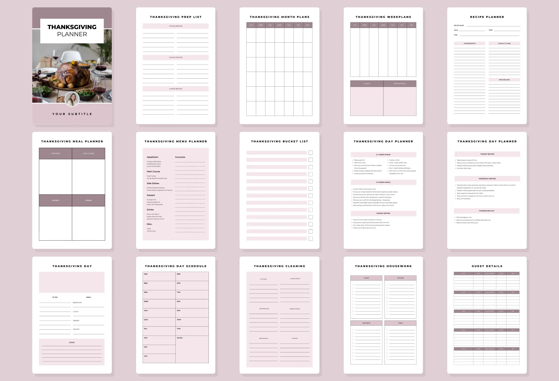 Planning for Thanksgiving can be overwhelming, but I've created a solution to make your holiday preparation seamless and enjoyable: my Thanksgiving Planner Canva Template. This comprehensive planner is designed to address the pain points of organizing a major holiday event. Are you tired of last-minute rushes and forgotten details? My template is your answer. It streamlines your planning with pages like the Thanksgiving Prep List, Month and Week Plans, ensuring you're on track weeks before the big day. No more panic or forgotten tasks! If you're struggling with meal planning, this template is a game-changer. Pages like the Recipe Planner, Meal Planner, Menu Planner, and Recipe Brainstorm Ideas keep your culinary plans organized. It means less stress in the kitchen and more time enjoying the feast. Feeling the budget pinch? The Thanksgiving Dinner Budget and Shopping List pages help you manage expenses effectively. Plus, the Decoration Planner and To-Do List ensure your home is festive without breaking the bank. But that's not all. The template includes a Thanksgiving Day Planner and Schedule, Cleaning and Housework planners, Guest Details, and a Guestlist to manage your event down to the last detail. And to top it off, there's even a Thanksgiving Thank You Card Checklist. This template is perfect for: - Hosts planning their first Thanksgiving - Experienced organizers looking to streamline their process - Anyone wanting a stress-free holiday experience - Families looking to involve everyone in the planning - Those wanting to keep traditions alive with a Thanksgiving Bucket List With additional features like Thanksgiving Activities, Budget Planner, Thanksgiving Notes, and more, every aspect of your Thanksgiving is covered. Download my Thanksgiving Planner Canva Template today and transform your holiday planning experience. Say goodbye to stress and hello to a well-organized, memorable Thanksgiving! Thanksgiving Prep List Thanksgiving Month Plans Thanksgiving Weekplans Recipe Planner Thanksgiving Meal Planner Thanksgiving Menu Planner Thanksgiving Bucket List Thanksgiving Day Planner Thanksgiving Day Thanksgiving Day Schedule Thanksgiving Cleaning Thanksgiving Housework Guest Details Thanksgiving Guestlist Thanksgiving Dinner Budget Thanksgiving Recipe Brainstorm Ideas Thanksgiving Thank You Card Checklist Thanksgiving Checklist Thanksgiving Activities Budget Planner Shopping List Thanksgiving Bucket List Decorations Reminders Thanksgiving To Do List Thanksgiving Notes Others