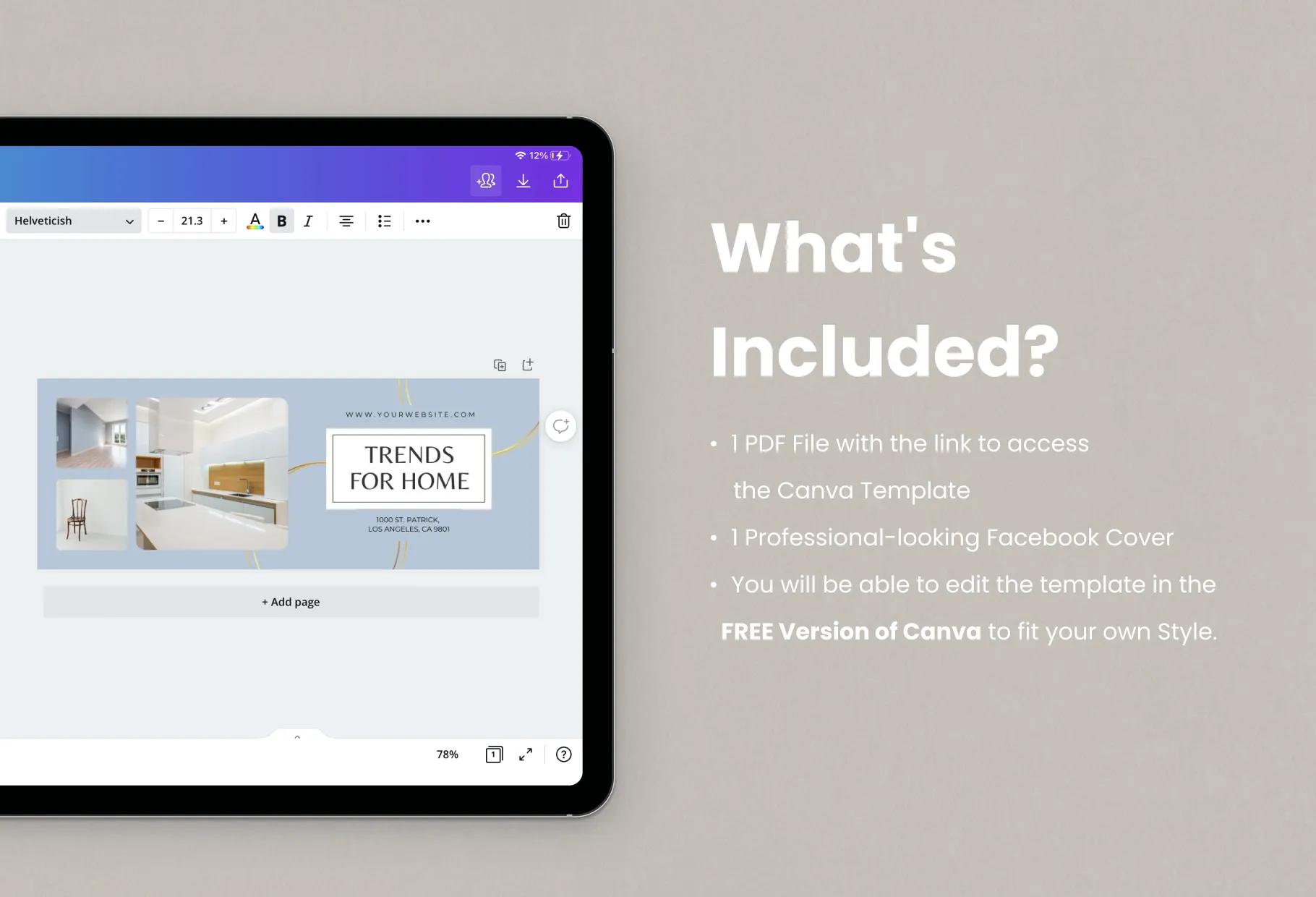 Keep your Facebook page looking fresh and trendy with this new Canva Facebook cover template! Create a beautiful and professional-looking Facebook Cover for your business in just minutes. Go from basic to awesome by using this easy-to-use design that you can customize in no time, without any graphic skills. Instantly boost your social media presence with this beautiful Facebook Cover for Canva.