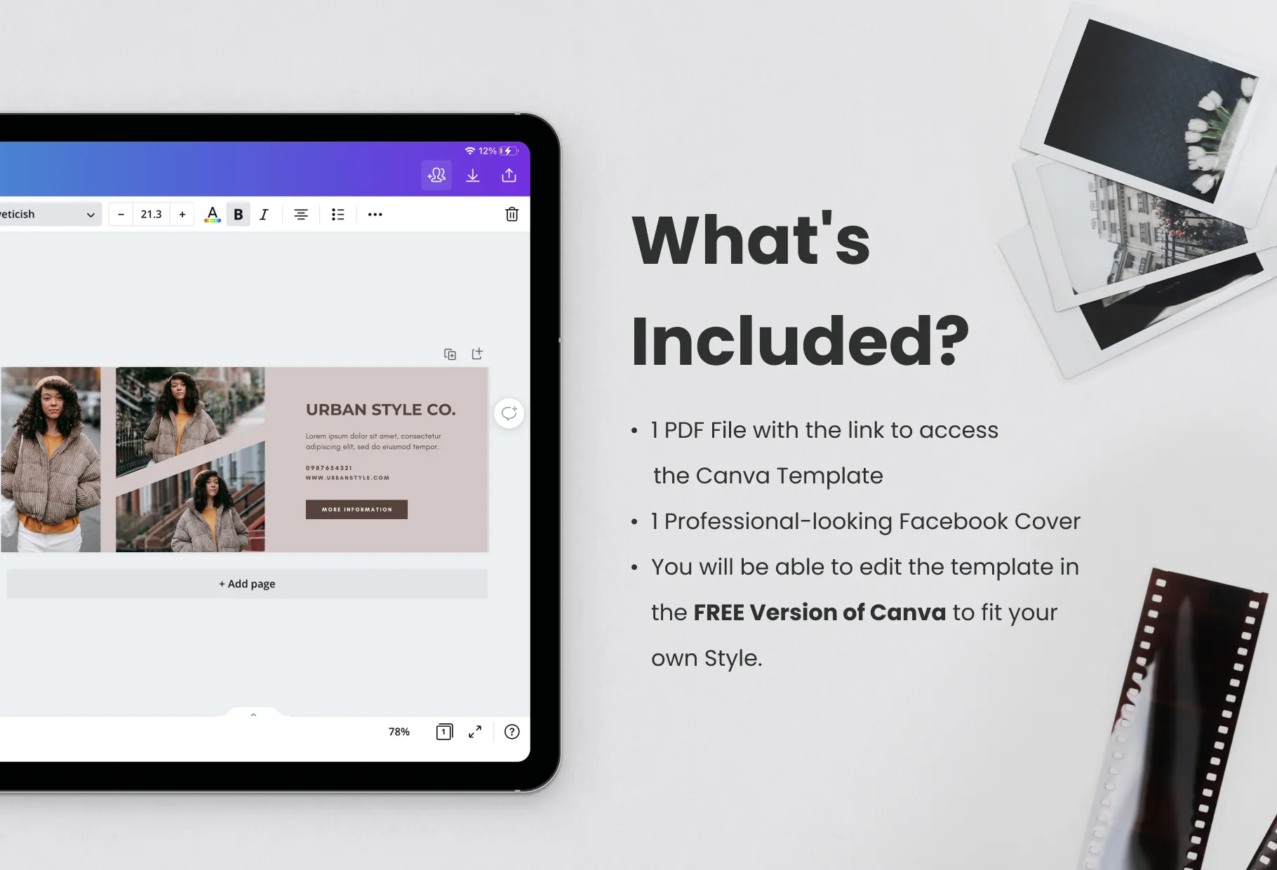 Urban Style Co Studio Facebook Cover for Photographers Editable Canva Template