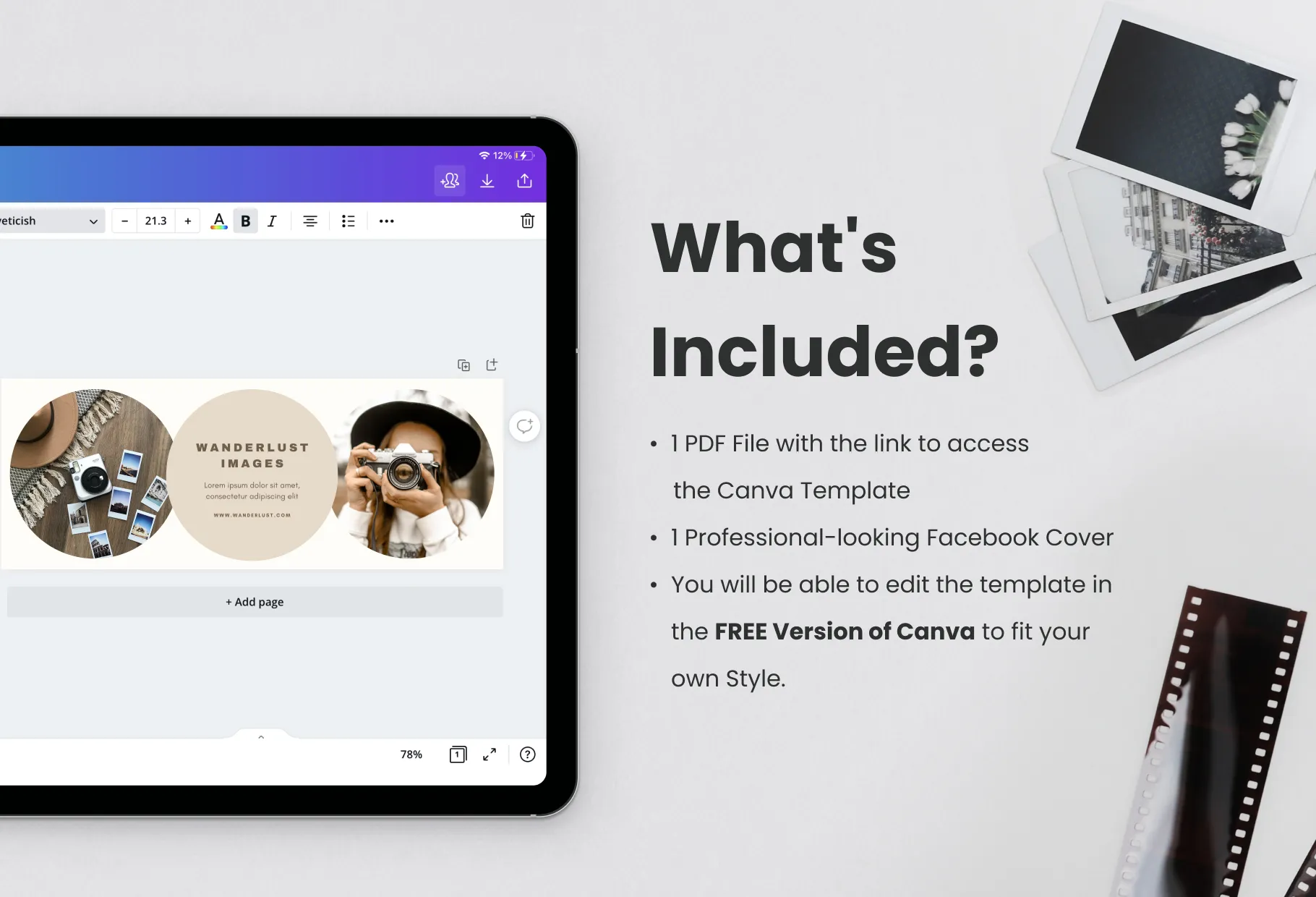 Wanderlust Images Facebook Cover for Photographers Editable Canva Template